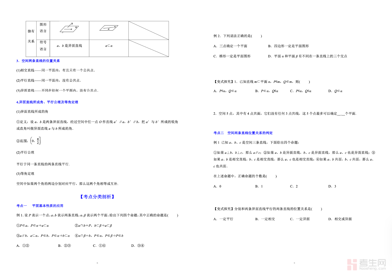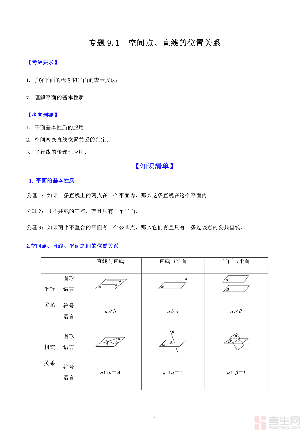 本资料为9.1 空间点、直线的位置关系 高考数学一轮艺体生基础复习讲义(新高考)(学生版),专为艺体生一轮复习量身打造,紧扣新高考考纲,立足基础、突出实用。内容系统讲解空间中点、直线的位置关系,异面直线判定与所成角、平行与垂直的基本定理等核心知识点,侧重基础理解、直观识图与通法讲解,难度适中、循序渐进。讲义包含知识点梳理、典型例题、步骤详解、易错提醒及配套练习,结构清晰、便于教学使用。助力艺体生快速建立空间几何思维,夯实立体几何开篇基础,提升一轮复习效率与应试得分能力,为高考数学备考筑牢根基。