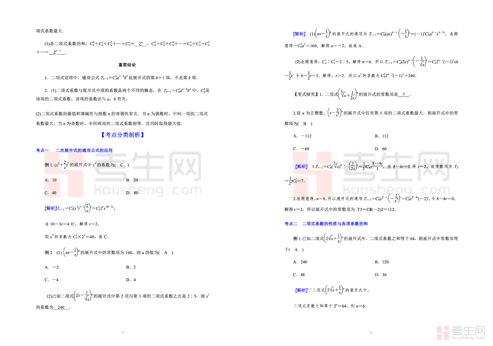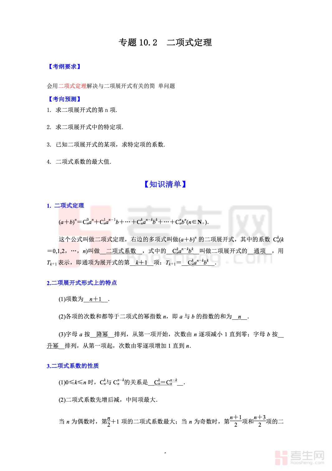 本资料为10.2 二项式定理 高考数学一轮艺体生基础复习讲义(新高考)(教师版),专为艺体生一轮复习量身打造,紧扣新高考考纲,侧重基础题型与高频得分点。内容系统讲解二项式定理、通项公式、二项式系数与项的系数、系数和等核心知识点,突出公式应用、基础计算与通解通法,难度适中、循序渐进。讲义包含知识点梳理、典型例题、详细解析、易错提醒及配套练习,结构清晰、实用性强,方便教师教学使用。助力艺体生快速掌握二项式定理核心考点,夯实概率统计模块基础,提升一轮复习效率与应试解题能力,为高考数学备考筑牢根基。