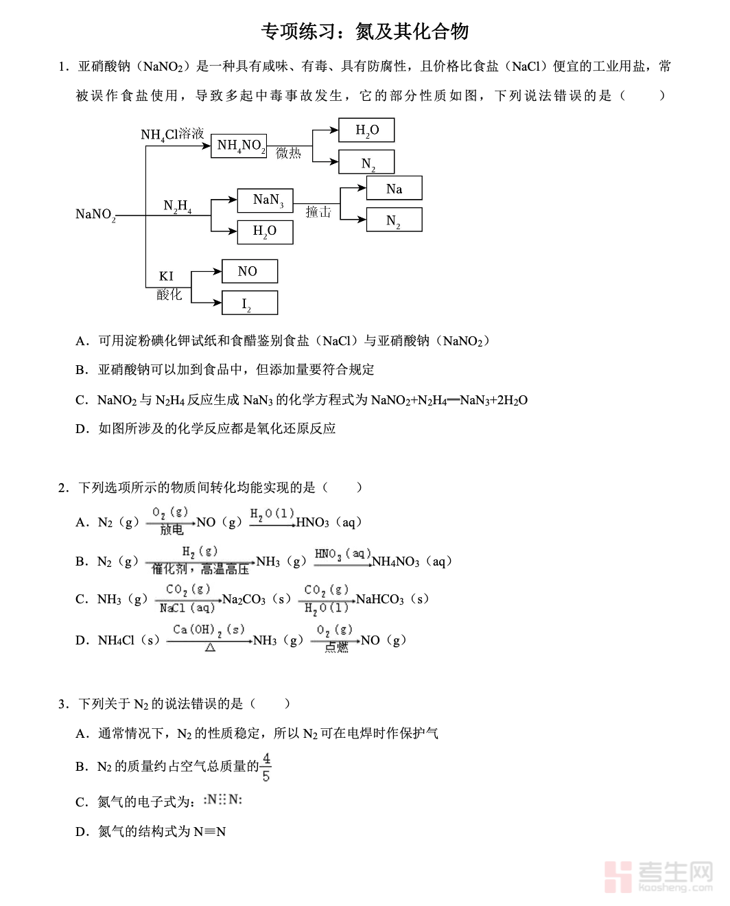 本资料为人教版第五章专项练习:氮及其化合物(高一化学)(下),紧扣人教版高中化学教材与高一教学进度,围绕氮及其化合物核心考点设计专项习题。内容涵盖氮气、一氧化氮、二氧化氮、硝酸、氨及铵盐的性质、反应方程式、相关计算与实验题型,难度梯度合理,贴合课堂练习与单元检测要求。习题针对性强、题型全面,配有详细解析,帮助学生巩固知识点、查漏补缺,提升解题能力与应试水平,适合高一学生课后巩固、专项突破与考前刷题使用。请添加微信 18617049513 进专属群,获取更多免费资源!