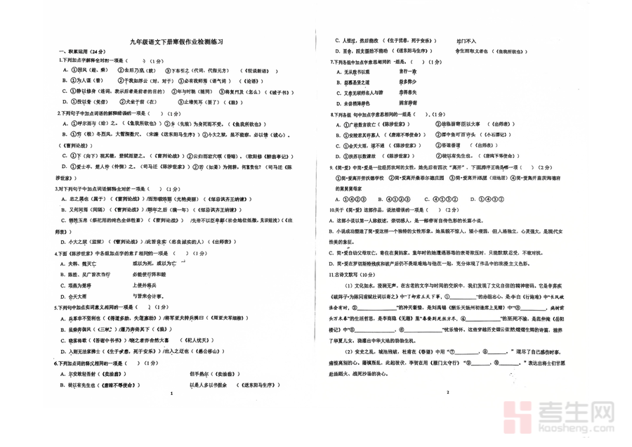 《湖南省长沙市华益中学2024-2025学年九年级下学期语文入学考试卷.pdf》是一份针对长沙地区九年级学生设计的优质语文备考资料,核心内容涵盖基础积累与运用、现代文阅读、古诗文阅读、写作四大模块,严格遵循湖南省中考语文命题大纲及华益中学教学特色。其特色亮点在于题型设置贴合本地中考趋势,包含经典题型与创新题型的结合,同时附带有详细的参考答案及答题思路解析,帮助学生深入理解考点,把握命题规律。