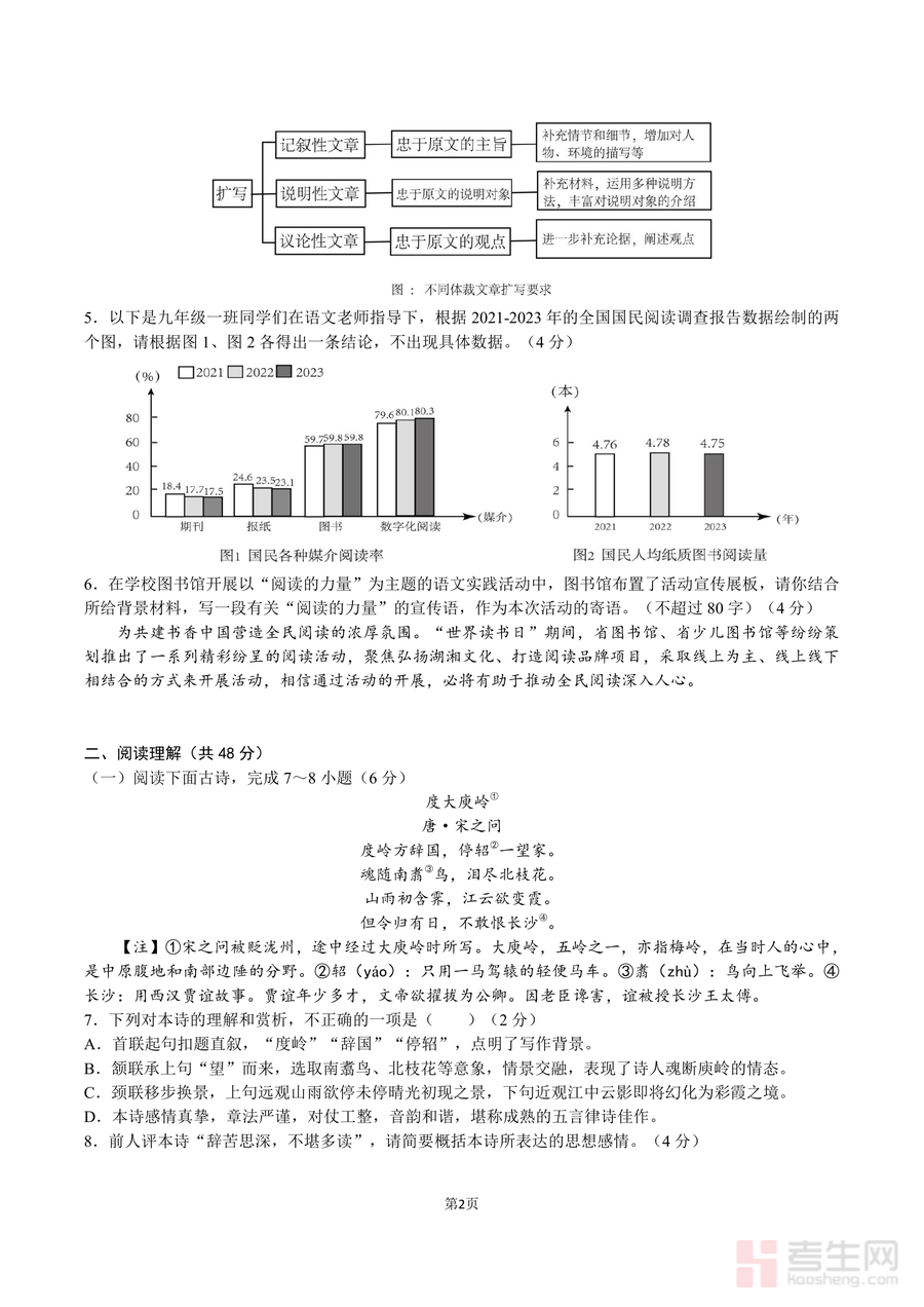 本试题适用于长沙市及周边地区九年级学生,尤其是目标师大附中系列学校或追求语文高分突破的考生;作为名校入学考试真题,它直观反映优质校教学标高,具有不可替代的参考价值,长期使用能帮助学生构建系统语文知识体系,提升综合应试素养,助力中考冲刺阶段的高效复习与能力提升.