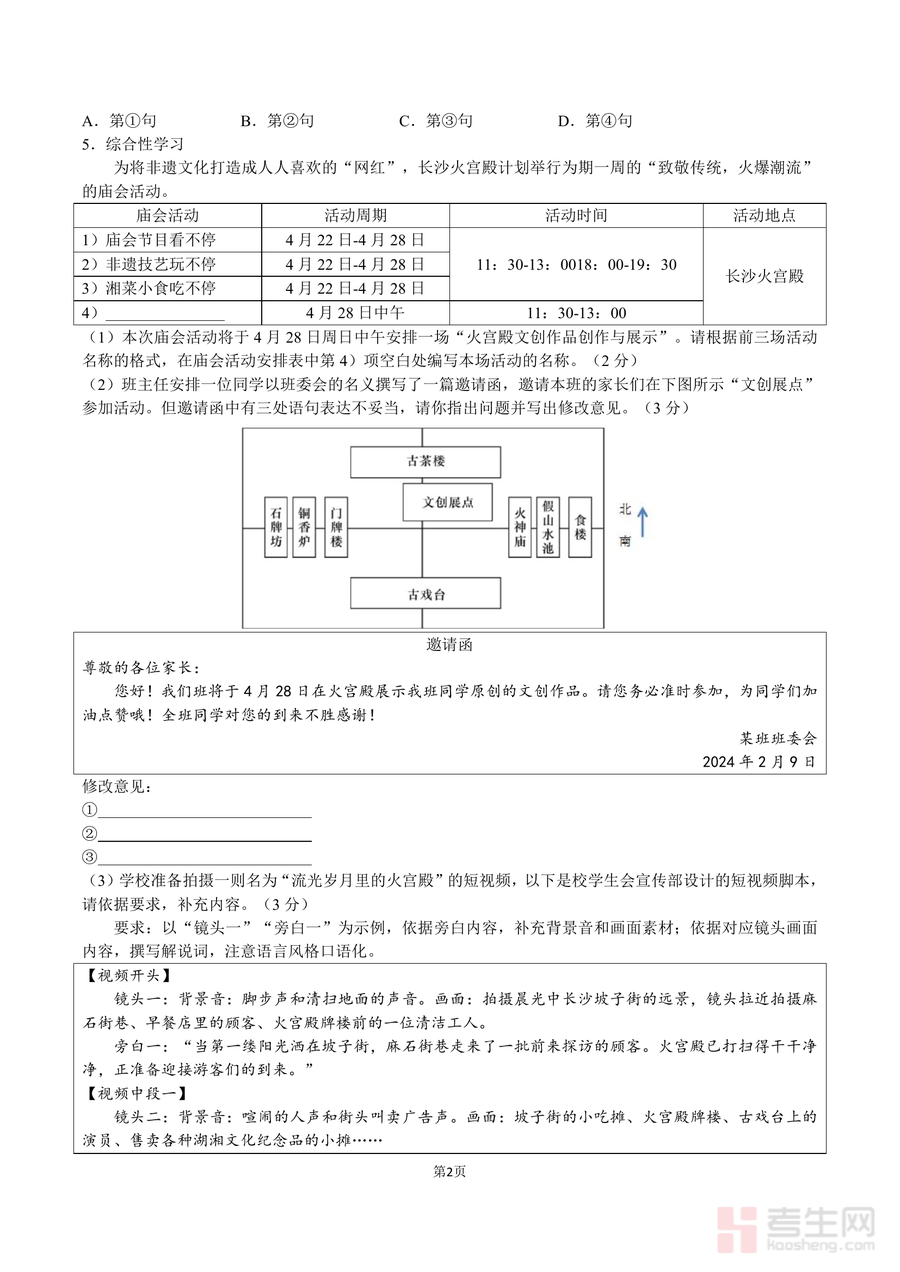 本试题适用于长沙市及周边地区九年级学生(尤其是德成学校及同类校学生)入学备考,也可供初中语文教师作为教学评估参考;其必要性在于填补入学阶段针对性真题缺口,不可替代性体现在本地文化元素原创命题及场景还原度,长期价值则是巩固初中核心知识体系,为后续中考备考奠定坚实基础。