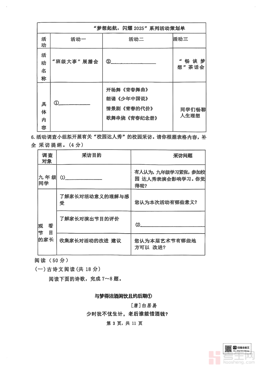 《湖南省长沙市雨花区雅境中学2024-2025学年九年级下学期开学考试语文试题.pdf》是一份针对九年级下学期开学阶段的优质语文备考资料,涵盖基础积累与运用、现代文阅读(含记叙文、议论文、说明文)、古诗文阅读(含默写、文言文理解)及写作等中考核心题型模块。该试题依托雅境中学多年教学经验与长沙本地中考命题趋势,题型设计贴合真实考场情境,注重考查学生的语文核心素养与应试能力,其特色在于将教材知识点与实际应用紧密结合,帮助学生实现知识的迁移与深化。