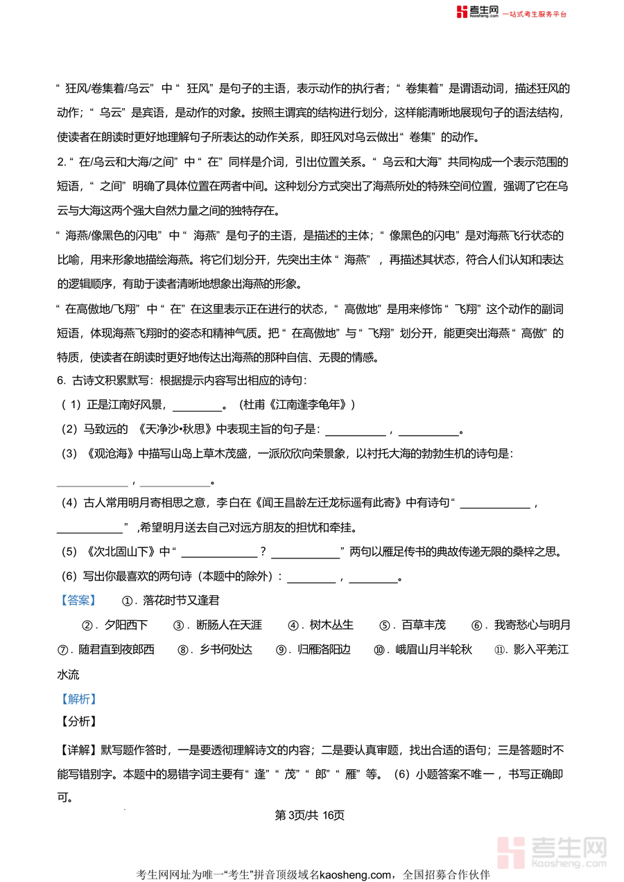 该资料核心用途为辅助七年级学生巩固语文基础知识与提升解题技巧,适用场景包括学生自主复习时对照解析查漏补缺,教师课堂讲解时作为教学参考资料,以及家长辅导孩子学习时提供专业指导依据;其用户价值在于通过真题训练与解析学习,帮助学生熟悉考试题型与命题规律,高效突破知识薄弱环节,备考优势显著体现在贴合本地教学大纲与学校命题方向,能让学生提前适应考试节奏,增强应试信心与实战能力。