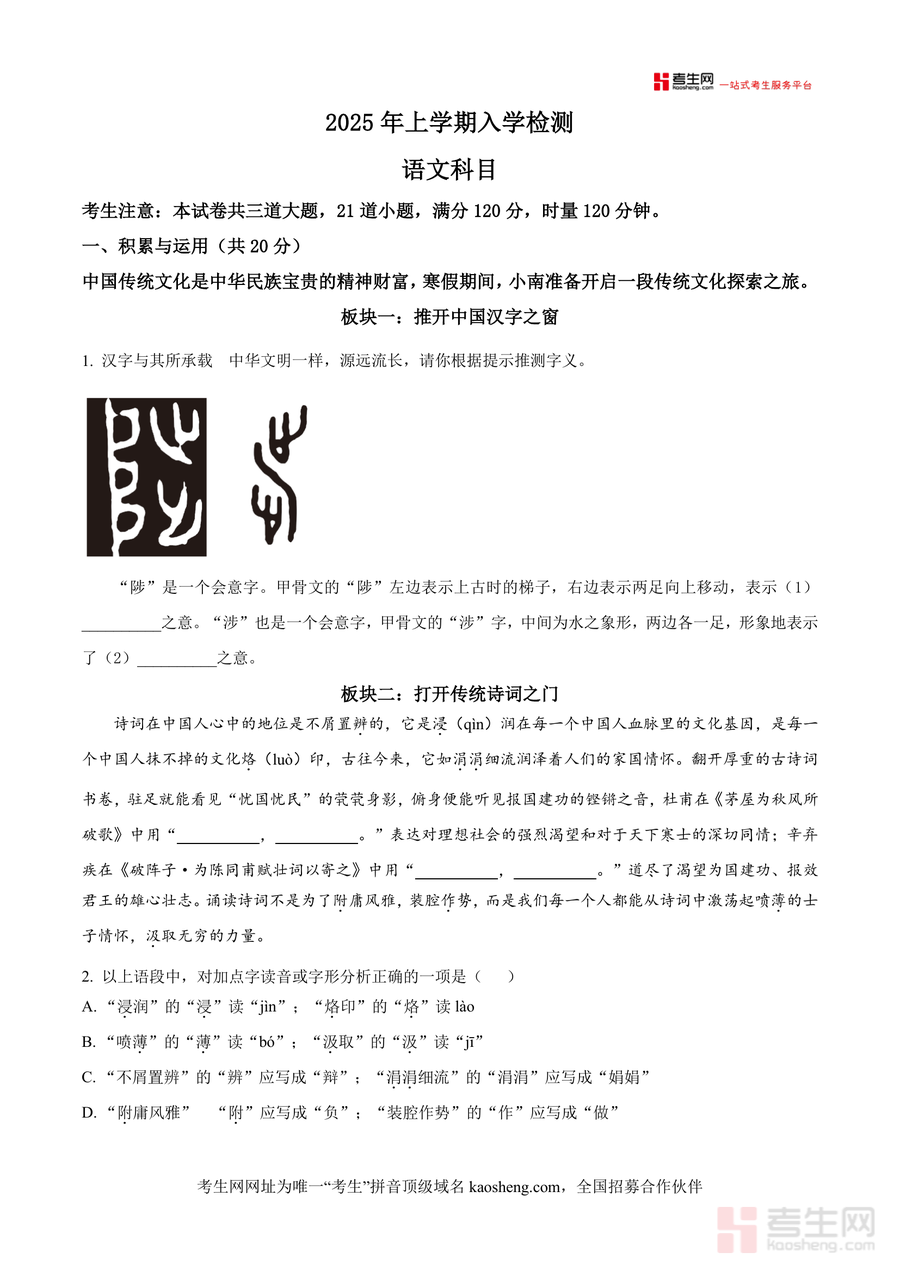 《精品解析:湖南省长沙市南雅中学2024-2025学年九年级下学期开学考试语文试题(原卷版)》是一份针对九年级下学期开学检测设计的优质备考资料,涵盖积累与运用、阅读与理解两大核心板块,包含汉字解析、诗词填空、民俗知识等基础题型,以及古诗文阅读和非文学文本阅读等综合题型,全面考察学生语文核心素养,突出对中华优秀传统文化传承的重视,体现长沙本地教学特色。