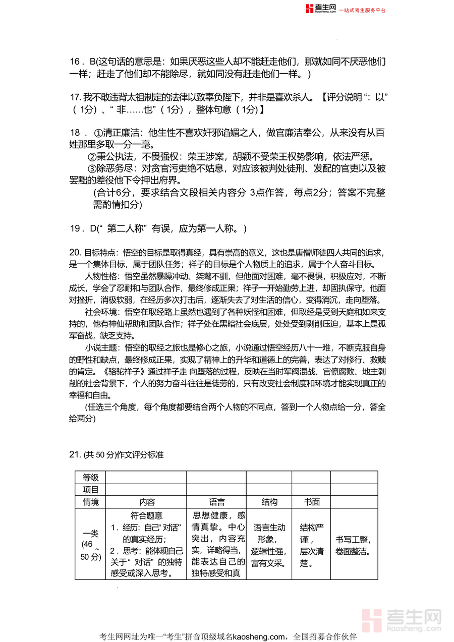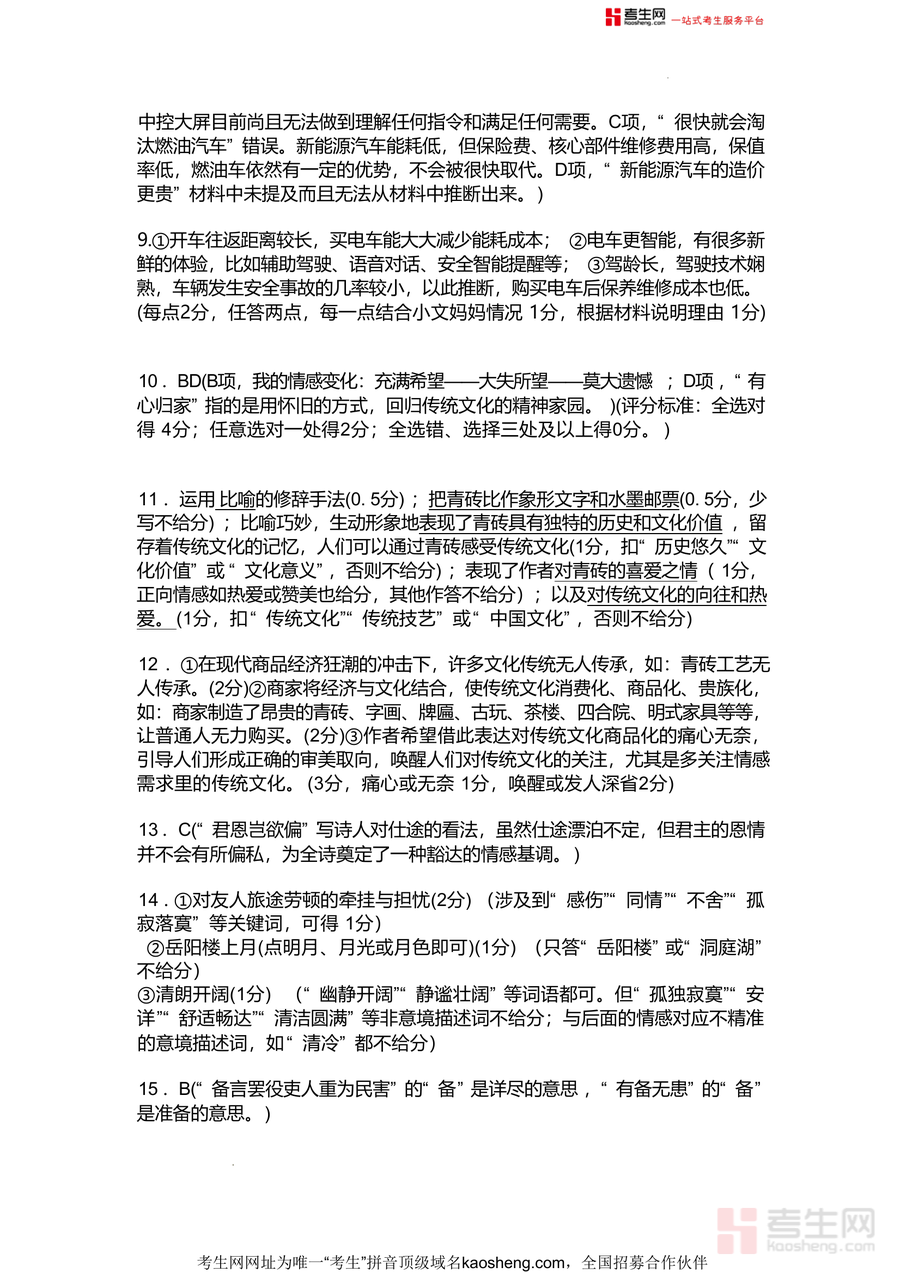该文件核心用途在于辅助教师高效批改试卷并统一评分尺度,帮助学生自查答题漏洞、明确得分要点,为家长提供指导孩子复习的依据;使用场景覆盖课堂讲评、课后自查、备考总结等环节,用户可通过对照答案及评分标准掌握答题规范,规避常见错误,提升应试能力;相比普通参考答案,其详细评分细则与易错点标注能让学生精准定位问题,针对性改进,增强备考效率与信心。
