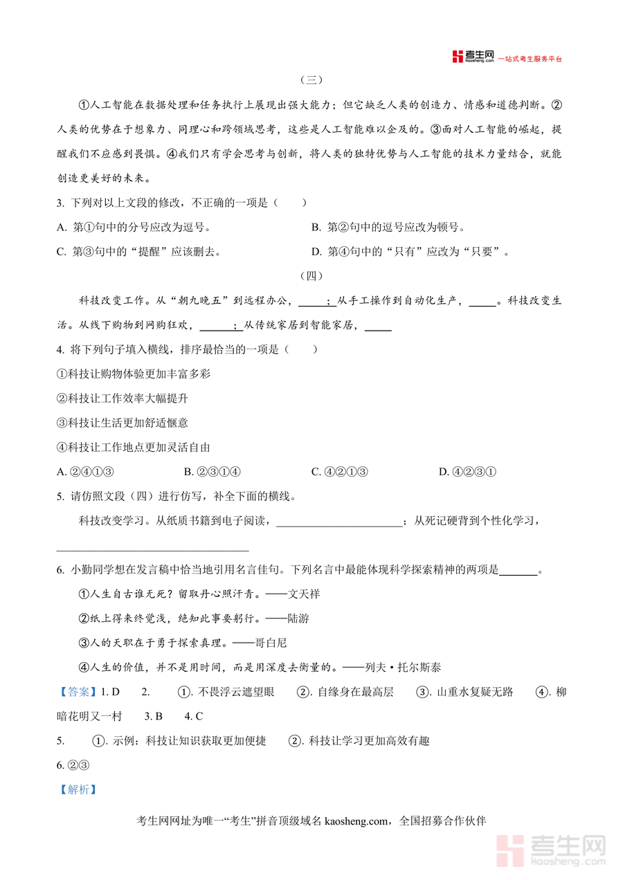 该资料的核心用途是辅助考生熟悉长沙中考语文题型结构与难度梯度,使用场景覆盖日常练习后的答案核对、阶段性复习的考点巩固及考前冲刺时的答题技巧优化;用户价值在于通过真题训练提升应试能力,尤其是针对本地考情(如科技主题语境下的数据处理类题目)及古诗文赏析等高频考点形成系统性认知;备考优势体现在依托湖南师大附中教育集团权威命题资源,解析内容贴合长沙中考评分细则,能有效帮助考生规避常见失分点,缩短答题时间,提高答题准确率与规范性。