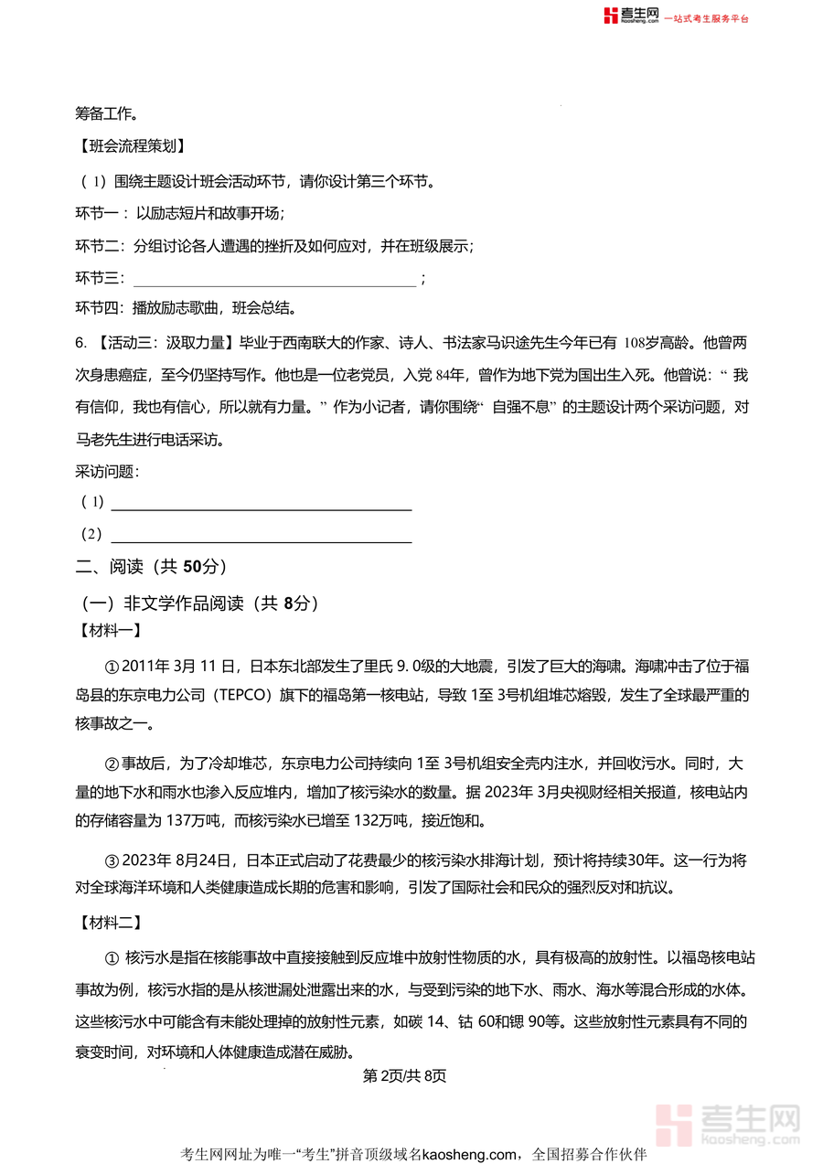 《精品解析:湖南省长沙市明德教育集团2025-2026学年九年级上学期10月课堂作业语文试题(原卷版).docx》是一份聚焦九年级语文阶段性学习成效的优质备考资料,精准匹配明德教育集团教学进度与中考命题趋势核心方向。资料涵盖积累运用(字音字形辨析、古诗文默写、语病判断、主题活动设计等子模块)、阅读(非文学作品阅读与文学作品阅读)等中考核心考查内容;题型设置兼顾基础巩固与能力拓展,能全面反映学生对九年级上册前半段知识点掌握情况及应试能力短板;其特色在于依托明德教育集团成熟教学体系,试题素材贴近学生生活与社会热点(如核污染水排海相关材料),兼具知识性与实践性,为后续备考提供清晰方向引导。