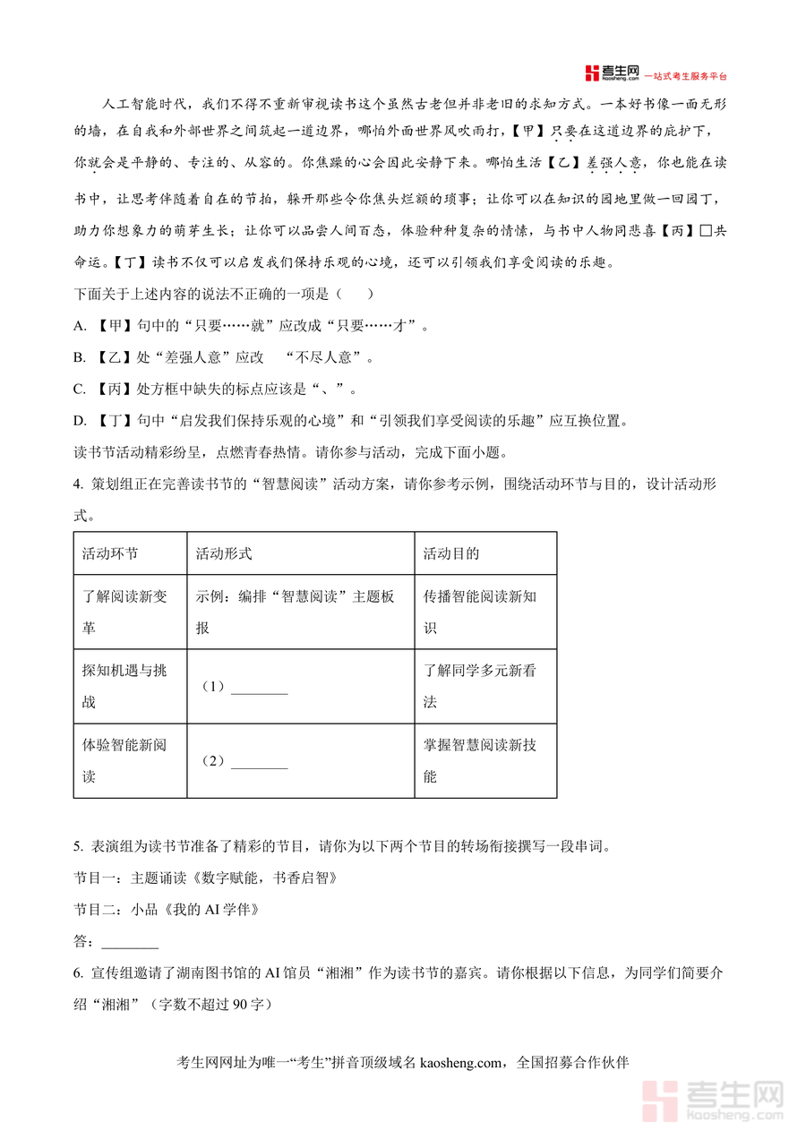 本资料适用于长沙市及周边地区九年级学生、备考附中集团相关学校的考生以及初中语文教师群体;作为附中集团官方开学考原卷资料,其具有不可替代性,不仅能帮助学生快速进入九年级紧张学习状态,更能通过真实考题训练积累实战经验,对提升语文综合素养与应试成绩具有长期指导价值,是九年级语文开学阶段不可或缺核心备考资源
