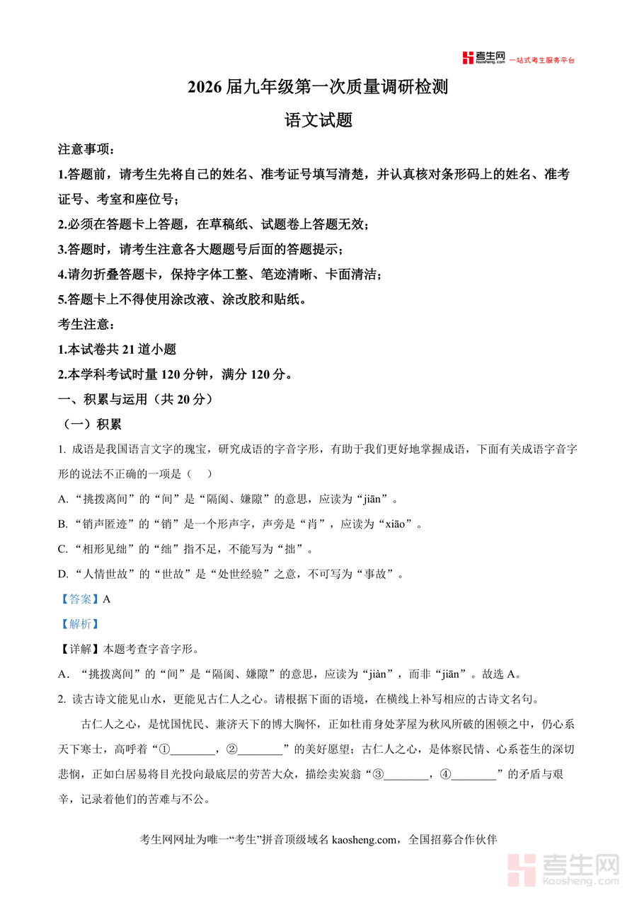 《精品解析:湖南省长沙市附中集团2025-2026学年九年级上学期开学考试语文试题(解析版)》是一份针对长沙附中集团九年级上学期开学考设计制作精准化语文备考资料,涵盖积累与运用(字音字形辨析、古诗文默写、语言运用实践)、非文学作品阅读等核心考查板块,特色在于解析深度融合最新教育热点如AI赋能阅读等考点,每道试题均配备详细答题思路、易错点标注及拓展延伸内容,帮助学生快速把握命题规律与考查方向?