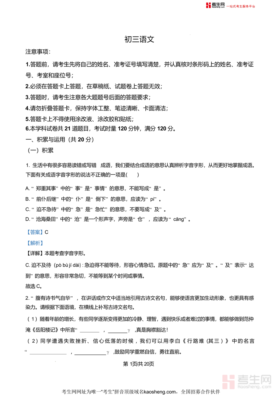 本资料适用于长沙市九年级学生,尤其适合青竹湖湘一及同类名校学生使用,也可作为初中语文教师备课参考资料。它必要性在于提供本地名校最新月考真题及专业解析,不可替代性体现在对该校命题风格与考点偏好精准把握,长期价值则是帮助学生构建系统语文知识体系,为后续中考复习奠定坚实基础,是九年级语文备考阶段不可或缺优质资料。