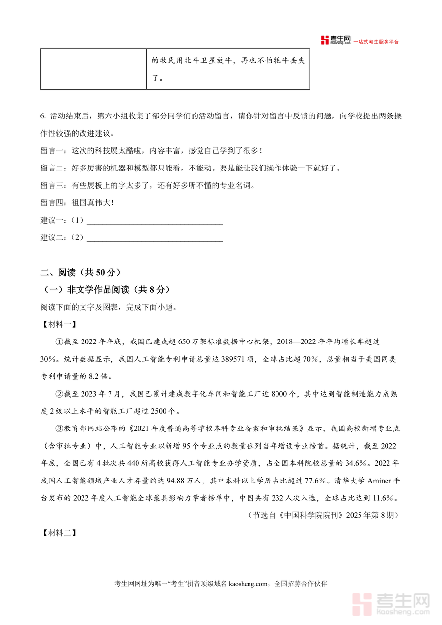 本资料适用于湖南省尤其是长沙地区九年级语文考生,以及需了解长沙一中教育集团命题风格 的教师与教研人员;作为权威真题原卷,它是期中备考不可或缺的数据资源,不可替代性体现在真实反映当地顶尖教育集团命题水准,长期价值在于帮助考生构建系统语文应试思维,为后续中考复习奠定坚实基础,无论自主复习还是机构辅导,均能为提升语文成绩提供重要支撑.