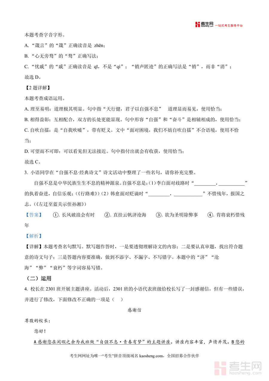 《精品解析:湖南省长沙市长沙县联考2025-2026学年九年级上学期期中语文试题(解析版).docx》是一份针对长沙县九年级期中联考语文科目的专业备考资料,聚焦本地命题特点,覆盖积累运用与阅读两大核心模块?资料包含完整试题及深度解析:积累运用部分针对字音字形(如"箴言""忧戚"读音、"秘决""与日具增"字形修正)、成语运用(如"自吹自擂"贬义词误用)进行易错点辨析,名句默写标注高频易错字(如"济沧海""衰朽"),综合实践围绕"自强不息"主题展开标语选择、采访设计及观点思辨指导;阅读模块解析非文学作品的数据提取与逻辑归纳方法,贴合本地联考考点方向?