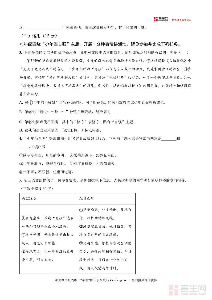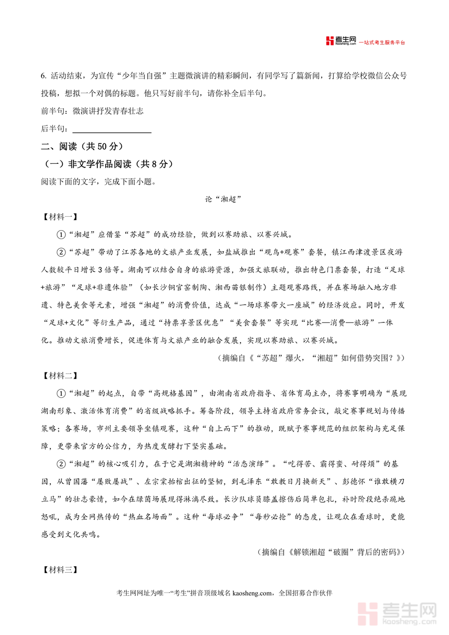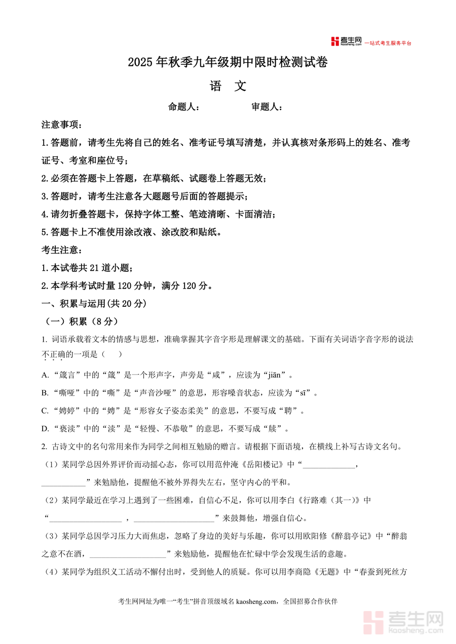 本资料适用于长沙及周边地区九年级学生(尤其是目标长郡系高中的学生)、初中语文教师及关注中考备考家长。作为区域权威教育集团发布原卷,具有不可替代的针对性与参考价值,是期中备考不可或缺资料;长期来看可作为后续中考复习阶段题型训练范本,助力学生系统提升语文素养与应试能力,为中考奠定坚实基础.