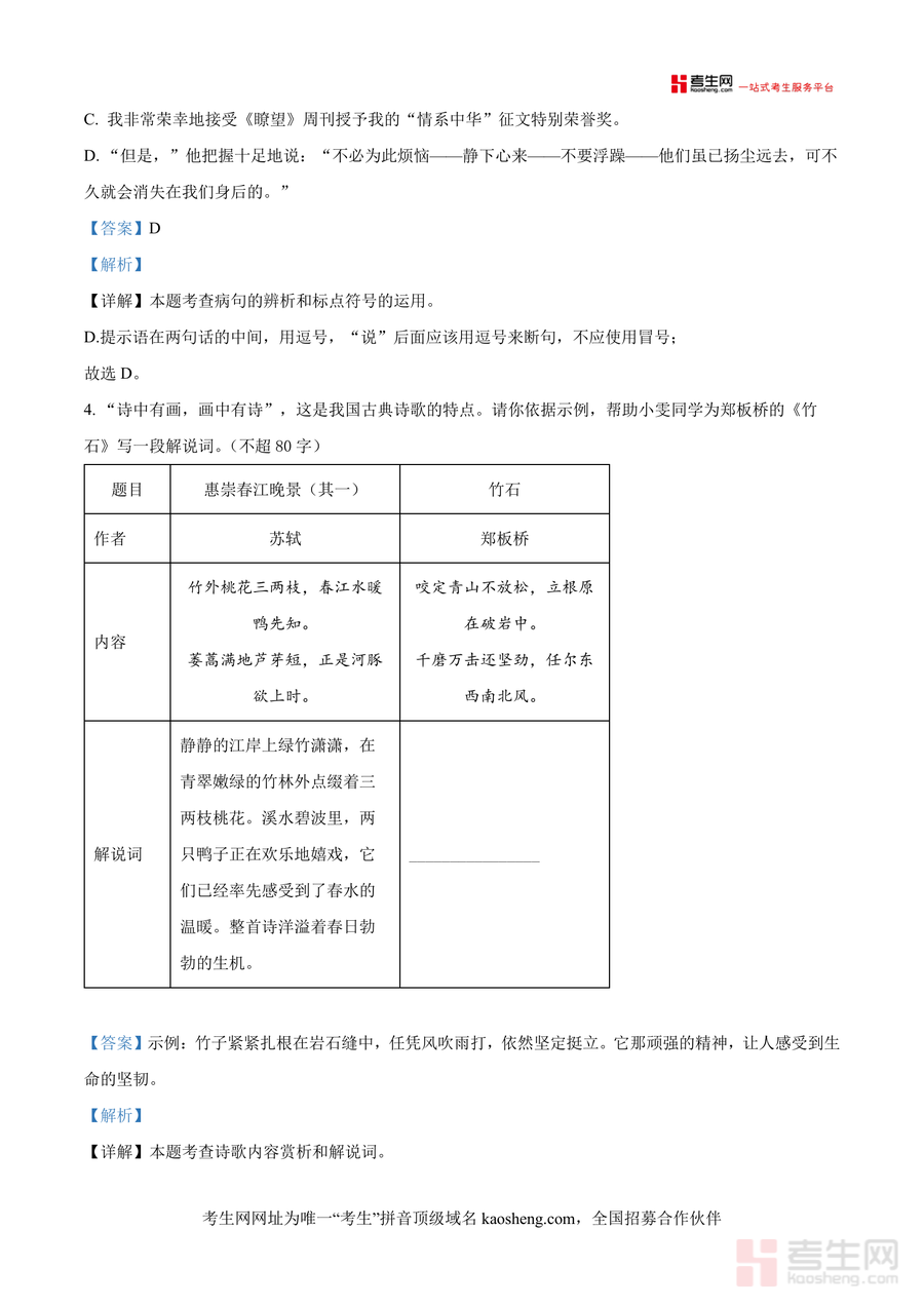 《精品解析:湖南省长沙市雅境中学2024-2025学年九年级上学期开学测试语文试题(解析版).docx》是一份针对该校九年级上学期开学测试编制的专业备考辅助资料,完整呈现2024年9月9日测试原题,覆盖积累与运用(含字词辨析、古诗文默写等)及阅读与鉴赏(含古诗词赏析、文言文阅读等)核心板块,每道题目均配备精准答案与逻辑清晰的解析过程,能帮助使用者深入理解考点本质与答题思路。