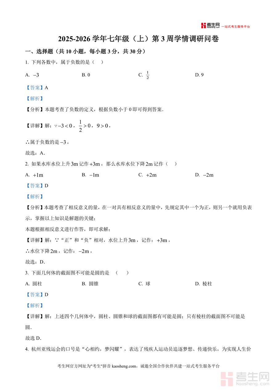 《精品解析:广东省深圳市宝安区海滨中学2025-2026年七年级上学期数学第3周周测(解析版).docx》是一份针对该校七年级学生第三周数学学情调研设计的数据化真题解析资料。文件涵盖选择题、填空题及解答题三大题型共23道题目,覆盖负数定义与比较、相反意义量应用等核心知识点,特色在于每题配备详细思路分析与步骤讲解,融入学情调研设计理念,帮助学生精准定位知识薄弱环节,提升解题能力。