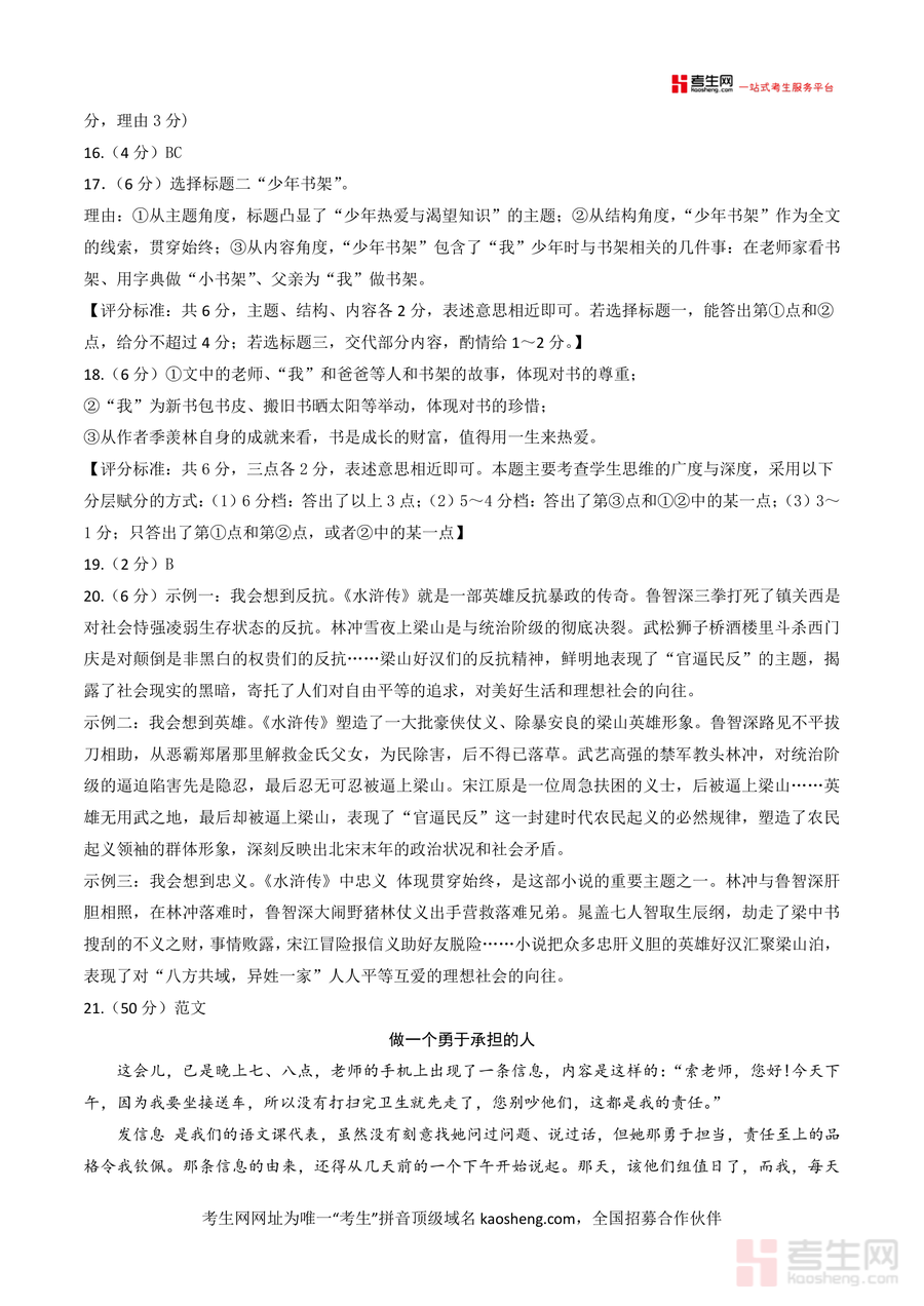 《九年级语文第一次月考卷(参考答案)(长沙专用).docx》是一份针对长沙地区九年级学生设计的语文月考配套参考资料,核心定位为助力师生精准把握第一次月考命题方向与答题标准。文件涵盖基础积累(字音字形、古诗文默写、口语交际)、古诗文阅读(诗词赏析、文言文理解)、现代文阅读(文本分析与答题技巧)、名著阅读(《水浒传》主题解读)及写作指导等全题型参考答案,特色亮点在于每道题附详细解析,如第17题标题选择给出主题、结构、内容三维评分标准,第20题结合名著实例拓展答题思路,且严格贴合长沙本地教学进度与考情要求。