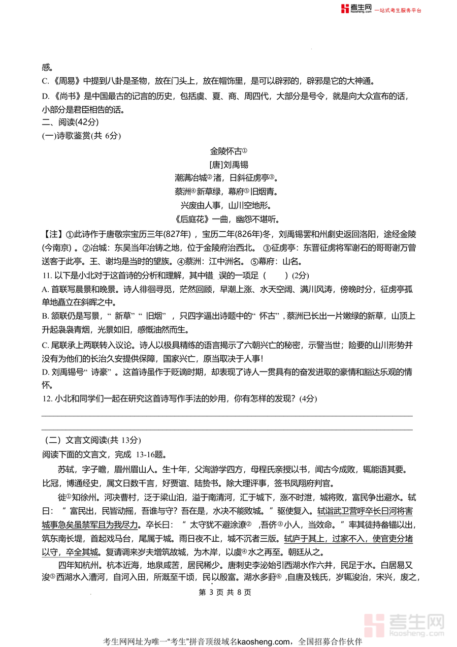 本试卷适用于长沙市及周边地区八年级学生,尤其是北雅中学及同类学校学生备考下学期入学考试时使用;同时也适合对初中语文核心知识点进行巩固复习的学生群体。作为由知名中学命题的真题资料,它能精准反映本地考试要求与教学重点,具有不可替代性;长期来看,试卷中的经典题型与考点分析可帮助学生构建完整知识体系,对后续语文学习具有持续参考价值,是提升语文素养与应试成绩的优质资源之一。