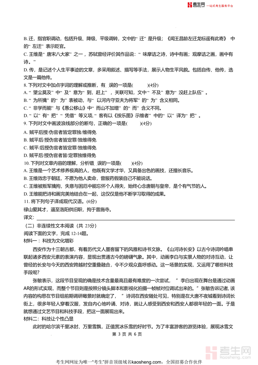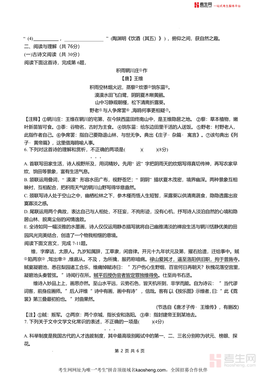 该试卷核心用途为八年级学生入学前语文水平自测与备考提升,适用场景包括寒假自主复习、开学前模拟训练及教师教学诊断;用户价值体现在通过真实题型训练帮助学生熟悉入学考试命题规律,掌握积累运用中的基础考点及阅读模块解题技巧;备考优势在于其贴近博才学校命题风格与难度层级能有效暴露知识薄弱点(如古诗文赏析、文言文翻译)助力针对性补短板提升应试能力与综合素养,为八下语文学习奠定坚实基础。