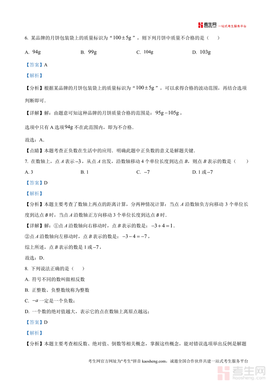 《精品解析:重庆市第七中学2024-2025学年七年级上学期第一次月考数学试题(解析版)》是一份针对初中七年级学生数学阶段性检测需求打造的真题解析资料,核心定位为辅助学生巩固基础知识点、提升解题能力的备考资料。该资料完整呈现了本次月考全卷内容(含10道选择题、8道填空题及8道解答题),并对每道题目进行详尽拆解:包含答案验证、核心考点标注(如正数负数定义、相反数概念、数轴三要素等)、解题思路梳理(如动点问题规律推导、新定义运算规则应用)及易错点总结等模块,形成"题干-分析-详解-点睛"四位一体的解析体系,突出基础与能力结合的特色。
