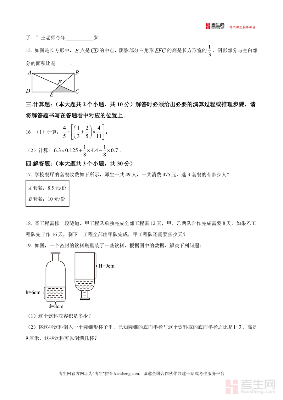 这份原卷的核心用途是帮助学生在开学前完成小学到初中数学学习的过渡性自我评估,适用场景包括新生暑期自主备考、培训机构衔接课程练习素材、教师备课参考案例。其用户价值在于通过真实真题暴露知识薄弱点(如代数运算技巧、几何图形分析逻辑),备考优势体现在能让学生提前熟悉初中考试的题型结构与时间分配要求,有效提升应试能力与解题策略运用水平。