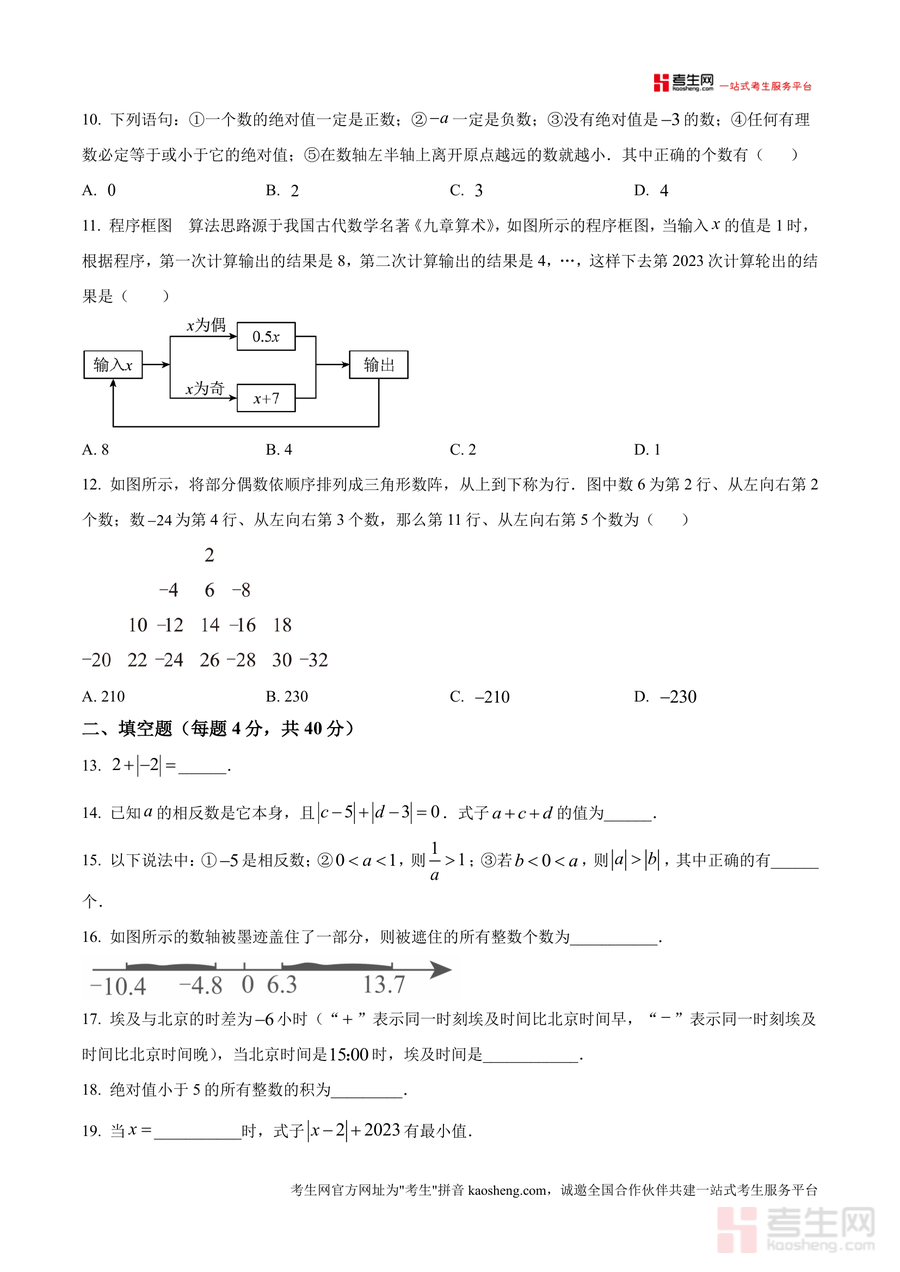 这份试题主要用于七年级学生的同步学习检测与备考训练,适用场景包括课堂定时作业、课后自主复习自测、单元知识巩固练习等。通过完成该真题,学生可熟悉重庆育才中学的命题思路与题型分布,提升应试能力与解题技巧;教师可借助试题了解学生知识薄弱点,优化教学策略;家长则能辅助孩子进行针对性训练,强化核心知识点的掌握。其备考优势在于试题内容与学校教学紧密衔接,能帮助学生提前适应考试节奏,有效提升数学学科的综合素养。