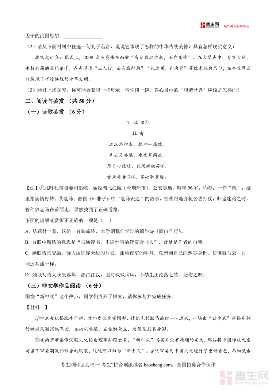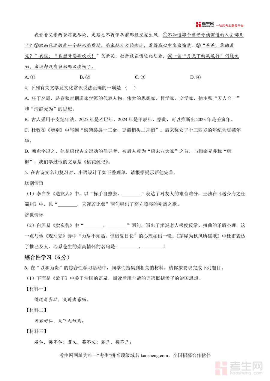 本资料适用于长沙市及周边地区八年级下学期学生、初中语文教师及关注孩子语文学习的家长;作为长沙名校长郡双语实验中学的期末真题,它不仅是期末备考不可或缺的资料,更因命题专业性与权威性具有不可替代性,长期来看,通过对这份真题资源的深入利用,能帮助学生巩固语文基础,培养阅读理解与表达能力,为后续初中乃至高中阶段的语文学习奠定坚实基础,是提升语文综合素养的优质资源。
