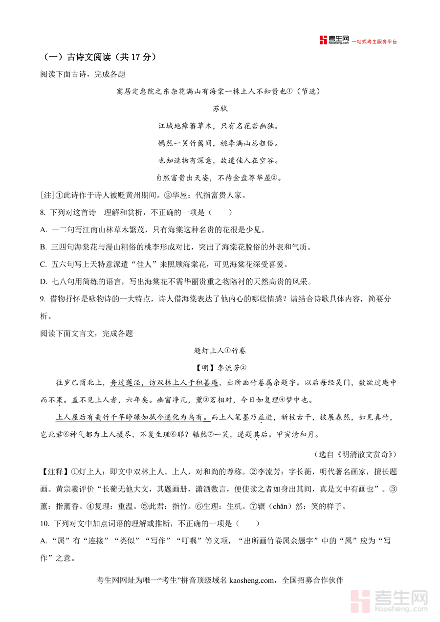 适用于长沙市及周边地区八年级下学期语文学生、初中语文教师及备考指导者;该资料是期末备考不可或缺工具,原卷版特性使其具有不可替代性——能真实还原考试情境,检验学习成果;长期价值在于通过真题训练可助力学生构建系统语文知识体系,并培养阅读理解、写作表达等核心素养,为后续语文学习奠定坚实基础。
