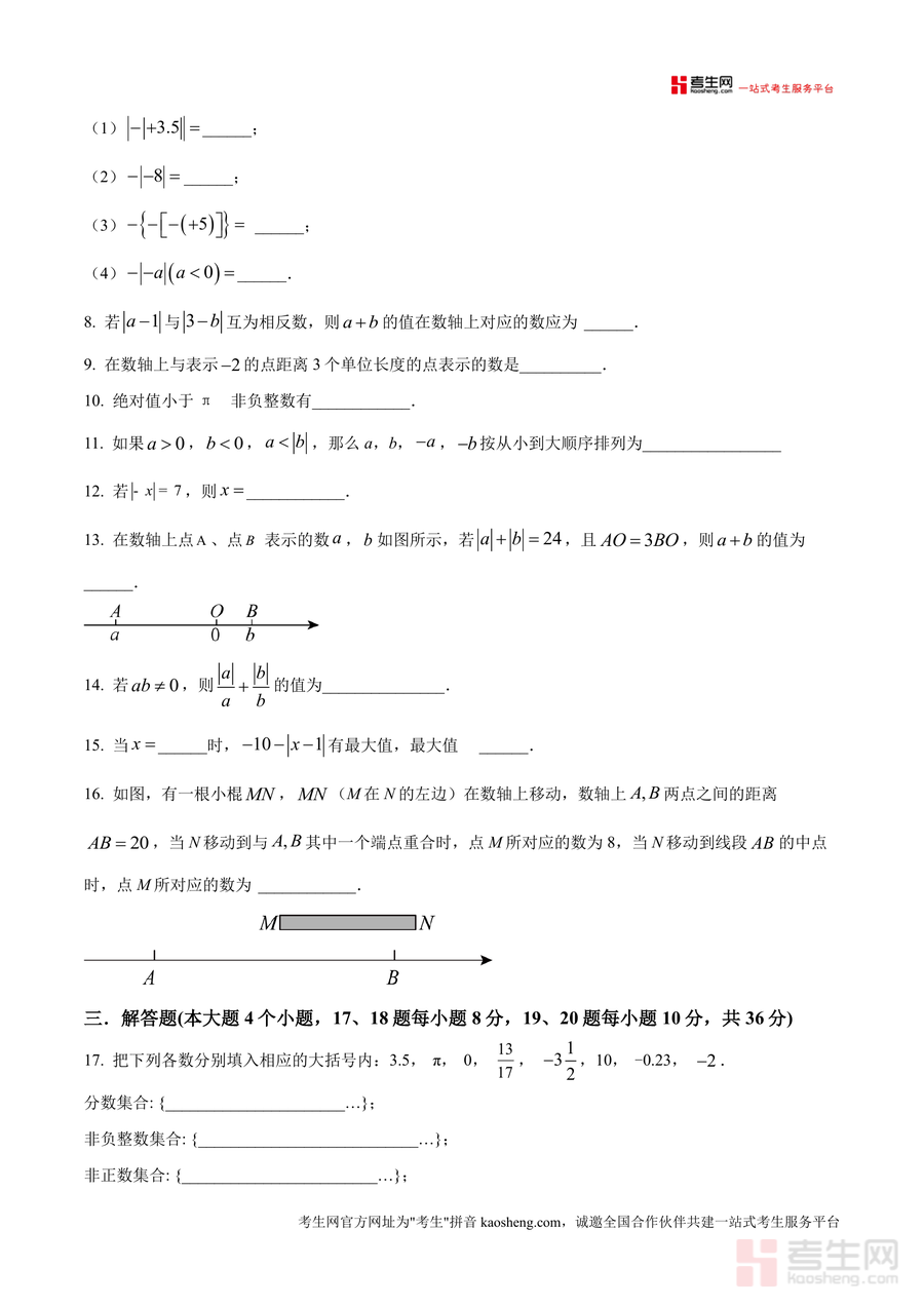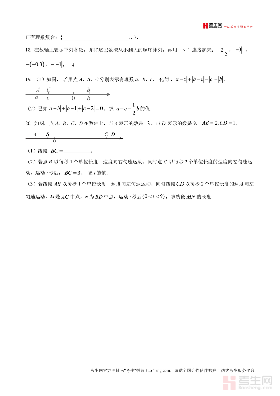 这份资料核心用途为课堂定时练习或课后自主训练材料,可用于检测学生对有理数相关知识的掌握程度;使用场景包括日常课堂小测(提升限时答题能力)、单元复习巩固(梳理知识体系)、考前模拟训练(熟悉题型结构)等;用户价值在于通过练习暴露知识漏洞,针对性强化薄弱环节以提升应试能力;备考优势体现在其精准匹配本校教学要求,能让学生提前适应本校命题规律与难度梯度,有效提高答题效率与准确性。