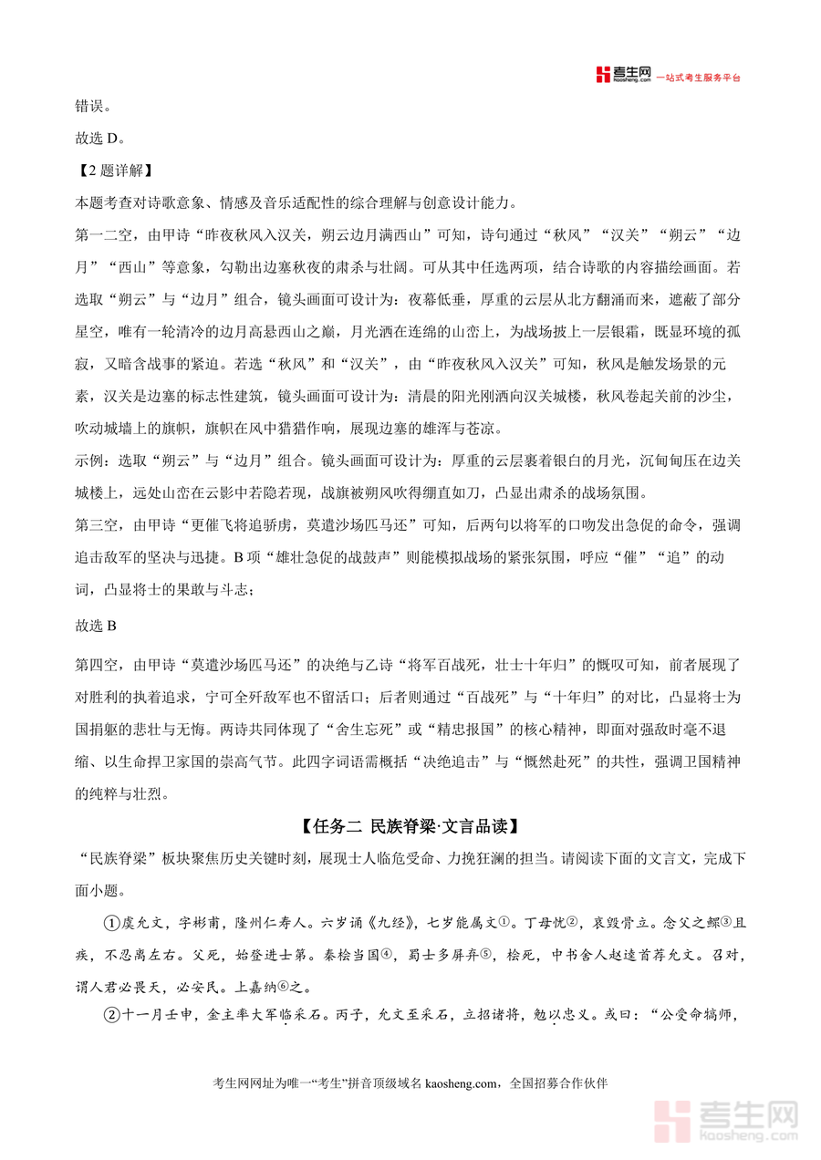 该资料核心用途在于帮助学生复盘月考失分点提升应试能力使用场景包括学生自主订正教师课堂讲评或家长辅助辅导通过解析学生可掌握古诗文意象提炼文言断句翻译人物形象概括等关键技能解析中对典型错误选项如古诗文情感表达误判文言词语用法混淆等对比分析能有效帮助学生规避答题误区增强审题精准度同时双板块联读设计培养跨文本思维深化文化理解为后续期中期末备考积累核心方法