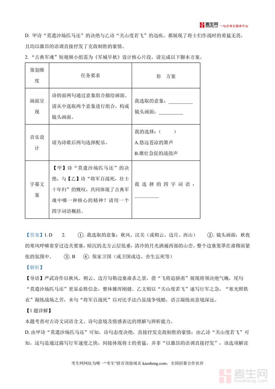 《精品解析:湖南省长沙市天心区联考2025-2026学年八年级上学期9月月考语文试题(解析版).docx》是一份针对区域联考语文测试的高质量备考资料聚焦八年级上学期初期知识掌握情况整合真题内容与深度解析特色亮点体现在双主题板块设计古典军魂联读通过唐代边塞诗与北朝民歌并置展现卫国精神民族脊梁文言品读选取南宋虞允文事迹强化文言理解与担当精神每个题目解析包含考点定位答题思路易错点提示及延伸拓展既覆盖古诗文阅读核心考点又渗透文化素养培养为学生提供全面系统解题指导