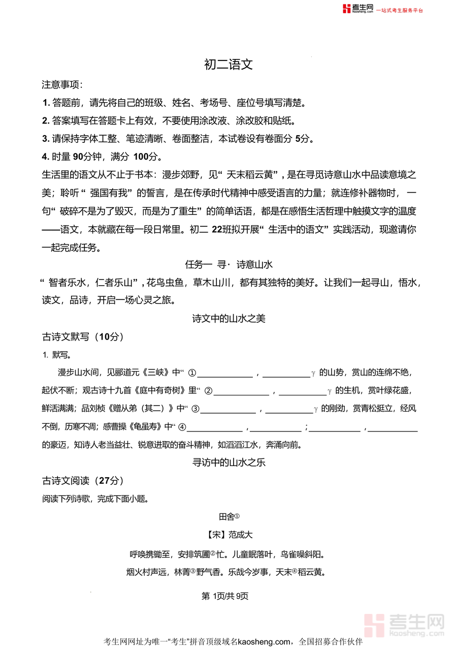 该资料核心用途为帮助学生熟悉月考题型结构与难度梯度,精准把握该校命题规律;使用场景包括学生自主刷题巩固知识体系、教师分析命题趋势用于课堂教学规划、家长辅助孩子针对性查漏补缺;用户价值在于让学生提前适应月考应试节奏,快速定位古诗文理解、名著细节掌握等薄弱环节;备考优势在于依托该校真实命题原卷,能有效提升应试能力,并为后续阶段学习积累实战经验。