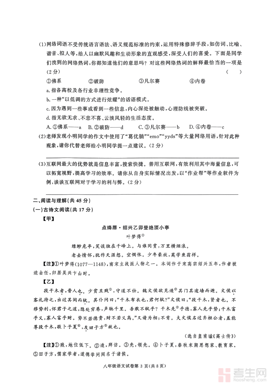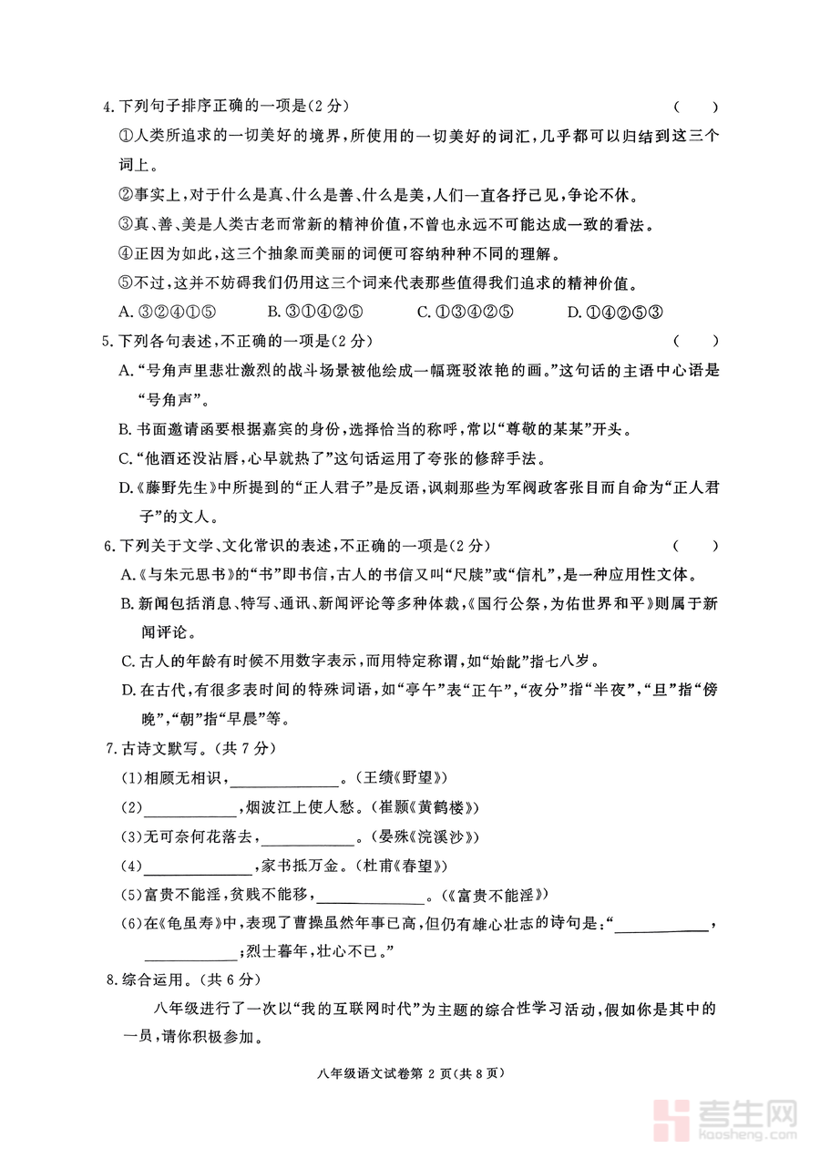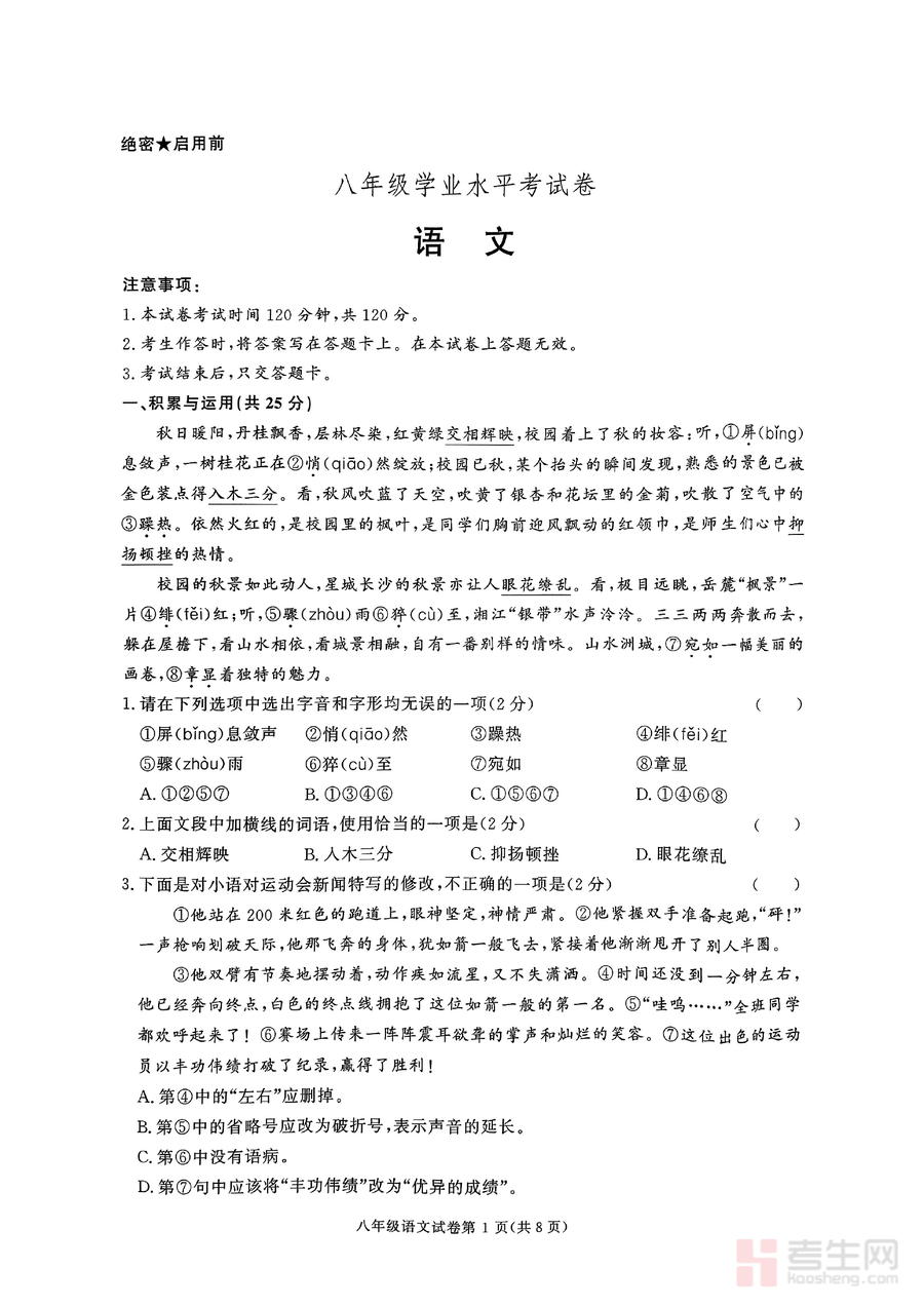 本资料适用于长沙县及周边地区八年级语文教师、八年级学生及其家长。作为当地最新期末真题,它不仅是期末备考的必备工具,更具有不可替代性——其命题逻辑与考点分布完全匹配长沙县学情,能帮助使用者高效掌握核心知识与技能;长期来看,它可作为八年级上学期知识体系的巩固资料,为后续学段的学习奠定坚实基础,是提升语文素养与应试成绩的重要资源。