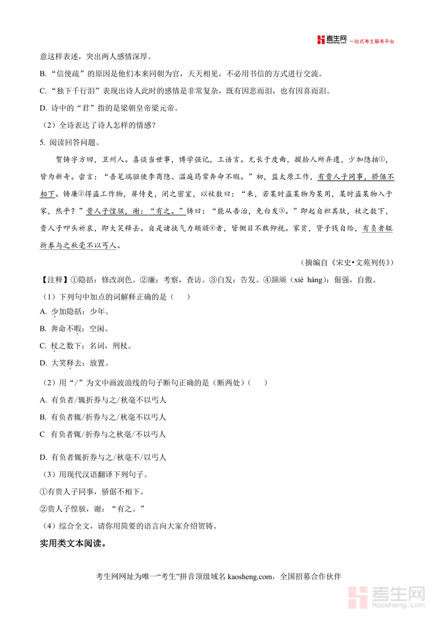 作为优质备考资料,这份文件可用于学生日常练习与模拟考试,帮助学生熟悉考试流程与题型结构特点,有效提升应试能力;教师可将其作为教学参考,深入了解考试重点难点;家长可用于辅助孩子复习巩固知识要点,具有极高实用价值与备考优势;能够系统性提升学生语文水平与考试成绩,为学生语文学习提供全方位支持指导,助力学生在期末考试中取得优异成绩表现。