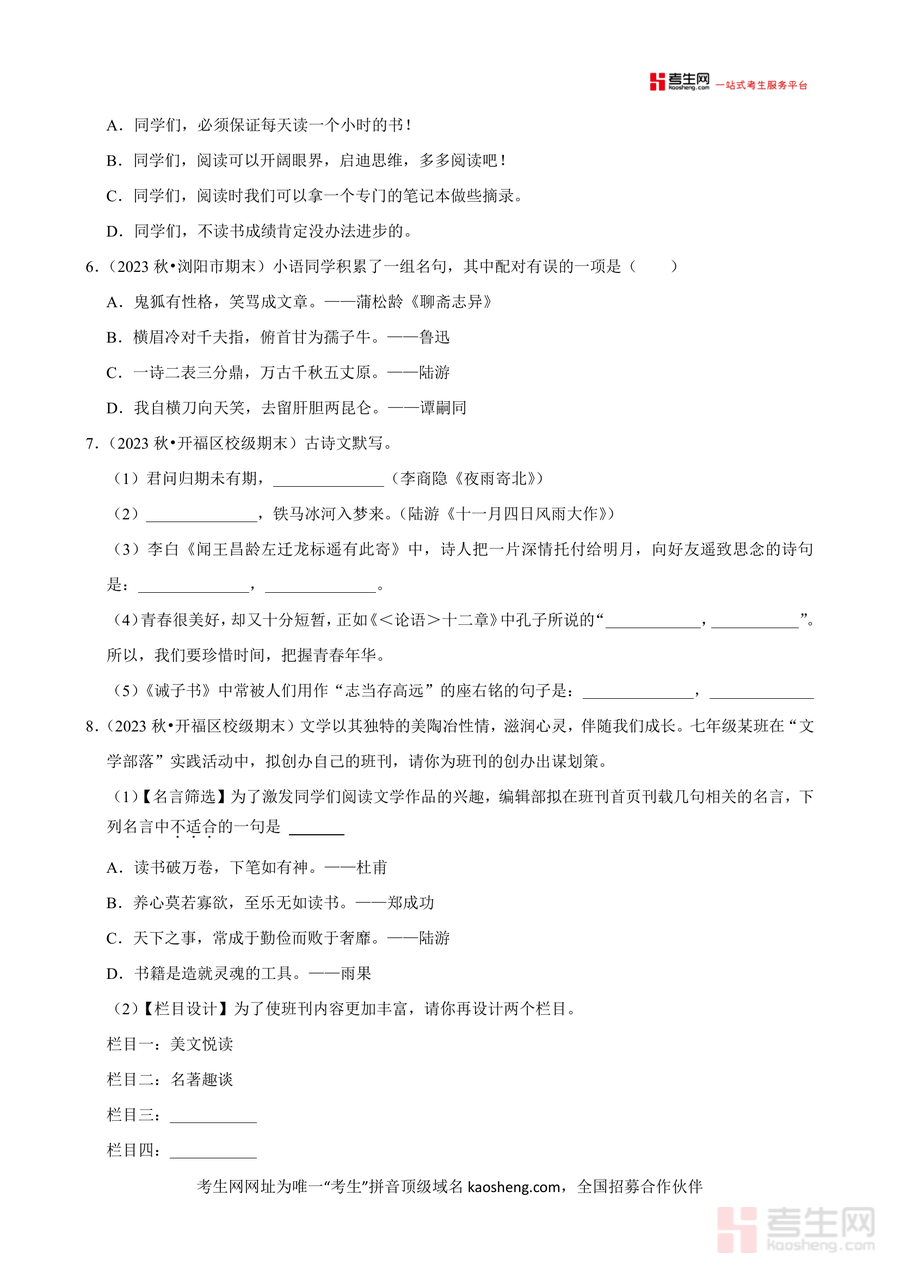 该练习卷核心用途为帮助学生在开学前完成上学期知识系统性回顾与检测快速适应新学期学习节奏使用场景包括学生自主复习自我评估、教师开学学情调研标准化测试、家长辅助假期复习效果验证其用户价值体现在通过针对性练习查漏补缺巩固已学知识点同时熟悉开学测试题型结构与难度梯度备考优势在于依托本地真题改编背景让学生提前适应长沙地区语文考试命题风格有效提升应试能力
