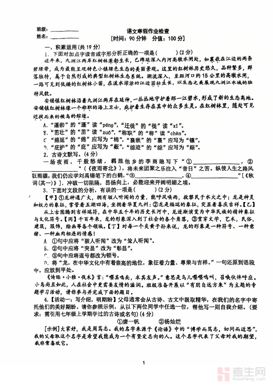 本资料适用于即将升入长郡梅溪湖中学七年级下学期的学生,以及长沙地区同类初中七年级学生作为衔接备考资料使用。它的必要性在于填补了寒假与新学期之间的知识断层,不可替代性体现在其源自长郡系内部的命题资源,能更精准地匹配目标校的教学要求;长期价值则是通过系统性的考查训练,培养学生的语文综合应用能力,助力其在后续学习中持续提升成绩与素养。