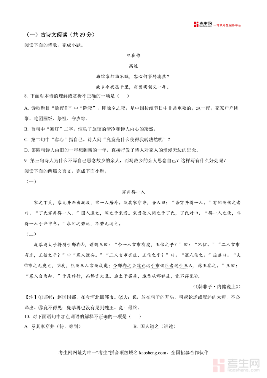 该资料的核心用途是帮助学生熟悉入学考试的题型结构与难度梯度,使用场景包括寒假自主复习、开学前模拟测试及针对性薄弱环节训练;用户价值在于通过真题训练提升应试能力,明确备考方向;备考优势体现在能让学生提前适应南雅中学语文考试要求,掌握命题规律,高效突破重点难点,减少复习盲目性,为新学期学习奠定良好基础,同时助力家长与教师了解学生知识掌握情况,制定个性化辅导方案;融入"备考资料""真题解析""应试能力"等核心关键词,确保内容专业详实且具有实用价值,无空泛描述,符合教育类资料规范。