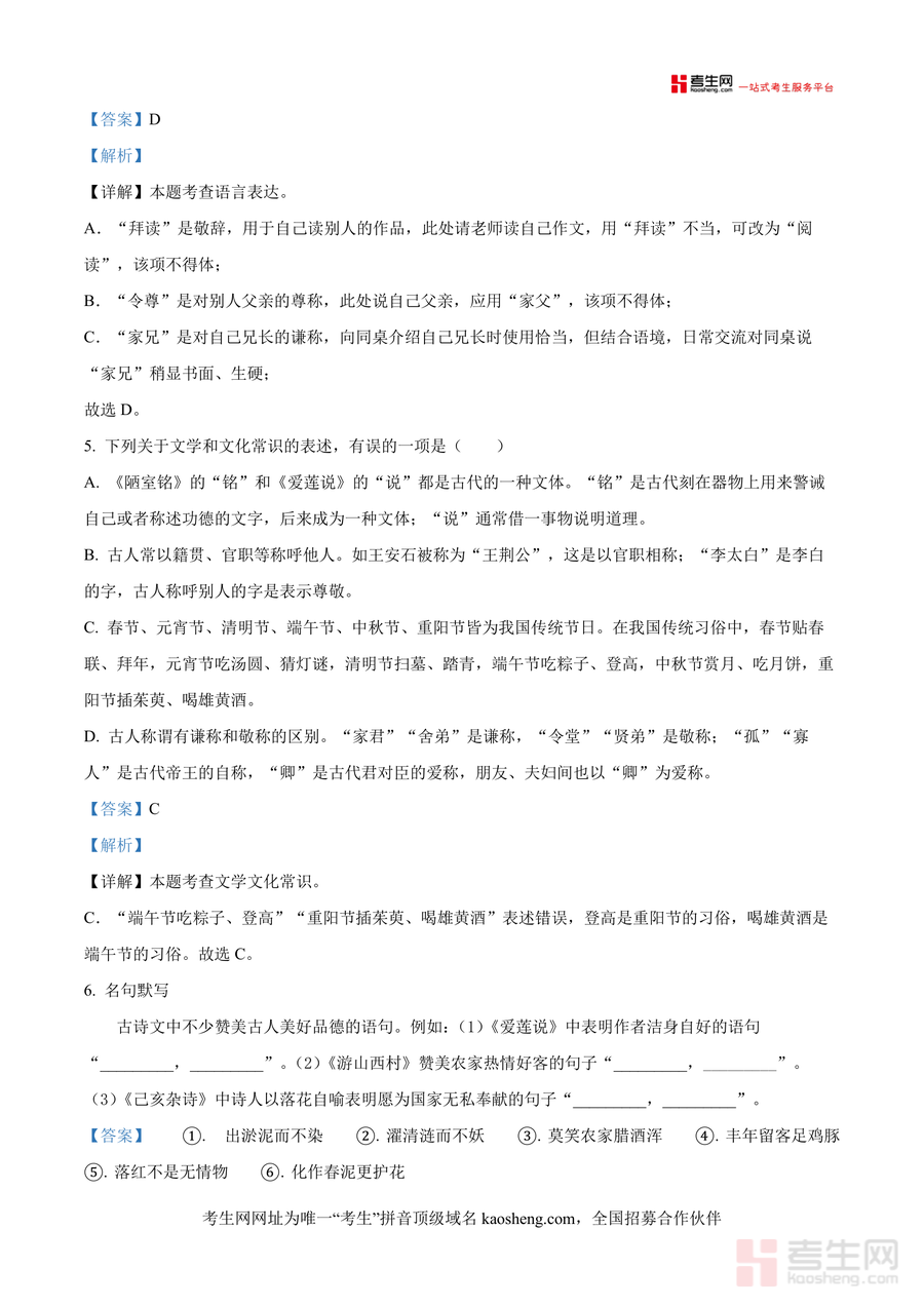 该资料核心用途为辅助学生高效备考期末语文考试,适用场景涵盖日常课后知识点巩固训练、考前真题模拟刷题及错题针对性复盘等环节;用户价值体现在通过真题训练熟悉校考题型与难度梯度,并借助详细解析弥补知识漏洞,显著提升应试能力——例如古诗鉴赏题解析从意象分析到情感解读形成完整思维链条,帮助学生掌握答题方法与得分技巧,快速提升解题效率与准确率。