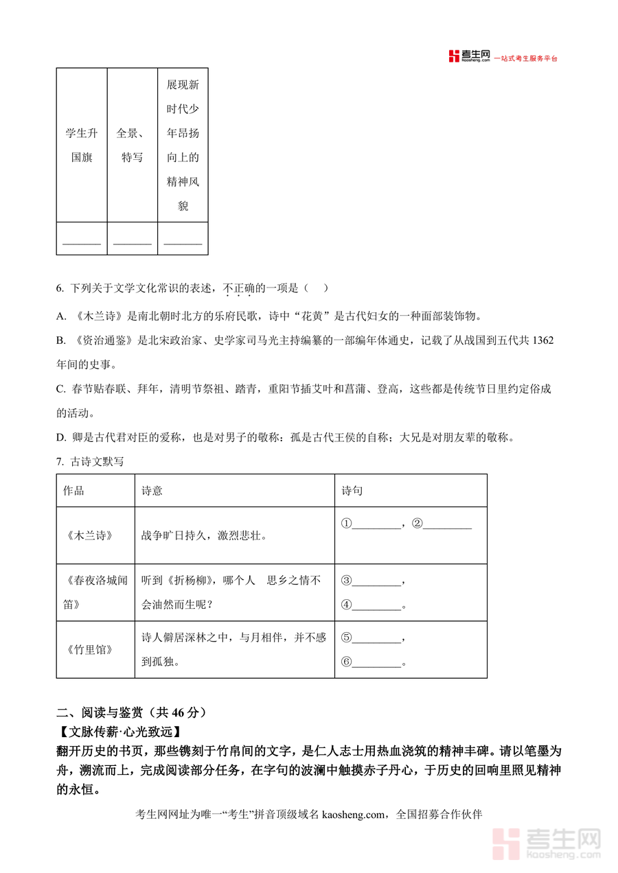 《精品解析:湖南省长沙市一中教育集团联考2024-2025学年七年级下学期期中语文试题(原卷版)》是一份聚焦七年级下学期语文核心考点、贴合长沙一中教育集团联考命题特色优质备考资料该资料完整呈现联考原卷内容涵盖基础与运用阅读与鉴赏表达与写作三大模块覆盖字音字形成语运用病句修改古诗文默写文学文化常识现代文阅读及作文等核心知识点其特色在于严格遵循部编版教材要求还原真实考试情境为学生提供贴近联考标准练习素材助力精准把握命题方向