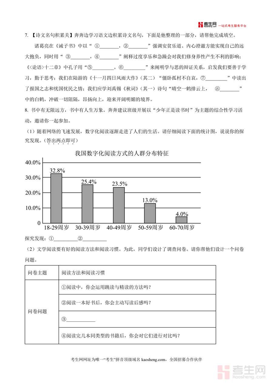 本资料核心用途在于助力学生自查阶段性知识掌握情况、教师开展教学诊断分析,使用场景覆盖学生日常复习巩固与考前模拟训练,也可供教师备课参考及学情分析;用户价值体现在帮助学生精准识别知识薄弱环节,针对性提升应试能力,教师借助真题可优化教学策略,其备考优势在于真题还原度高,能让学生提前熟悉本地考试题型设置与难度梯度,增强备考信心,高效提升语文应试水平