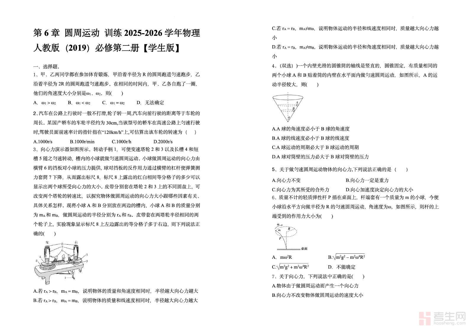 本资料为高一物理圆周运动专项,紧扣高中物理必修教材核心考点,系统梳理线速度、角速度、周期、向心力、向心加速度等核心概念与公式,深入讲解匀速圆周运动、非匀速圆周运动的规律及应用。内容涵盖典型题型解析、解题方法总结、易错点提醒,搭配经典例题与变式训练,帮助学生夯实基础、突破难点,提升圆周运动相关问题的分析与计算能力。适合高一学生同步学习、专项突破与期末复习使用,是物理学习的实用辅导资料。请添加微信 18617049513 进专属群,获取更多免费资源!