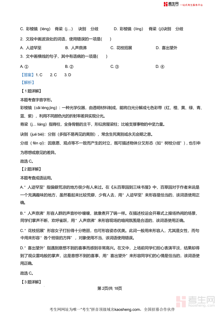 《精品解析:湖南省长沙市湖南师大附中教育集团联考2025-2026学年七年级上学期期中语文试题(解析版).docx》是一份针对初中七年级上学期期中语文联考真题设计 的专业备考资料,聚焦积累与运用、阅读与鉴赏等核心模块,覆盖试卷19道小题全题型解析,涵盖字音字形辨析、成语运用判断、病句修改、古诗文阅读及文化常识等关键知识点,特色亮点在于解析部分采用分层式讲解,对每道题目的考点溯源清晰,如字音字形题详细标注拼音规则与字形演变,成语运用题结合语境分析使用场景,病句题拆解句式杂糅等常见错误类型,帮助使用者精准把握考点本质,是兼具权威性与实用性的真题解析资料。