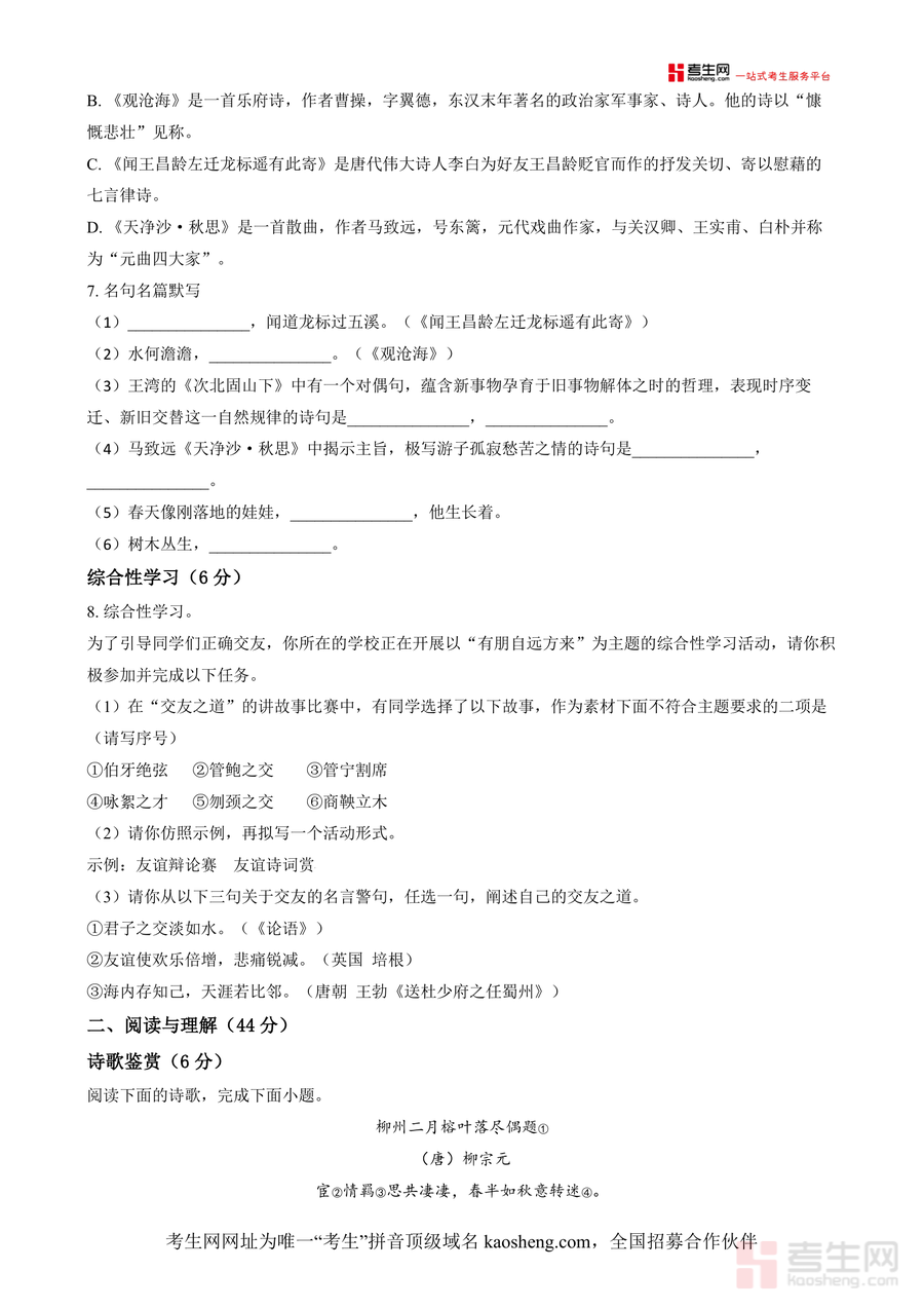 本文件适用于七年级语文学习者、初中语文教师及关注孩子学业的家长群体。作为长郡梅溪湖中学权威真题原卷,其内容具有不可替代性,不仅能助力学生高效备战首次月考,还可长期作为七年级上学期语文知识复习参考,对提升语文综合素养具有持久价值,是优化备考策略、强化知识掌握度的重要资源。