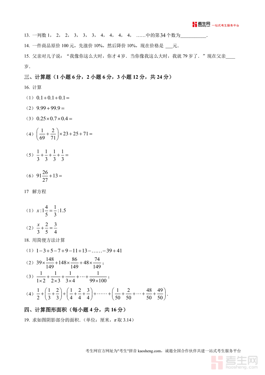 本资料适用于深圳市龙岗区博文学校及周边计划参加该校小升初衔接入学考试的六年级学生,也可供小学数学教师及关注孩子衔接阶段数学学习的家长使用。作为贴合目标校考试要求的原卷资料,它不仅能帮助学生提前适应考试节奏,还能培养其逻辑思维与解题技巧,为初中数学学习奠定基础,具有不可替代的备考价值与长期学习指导意义。