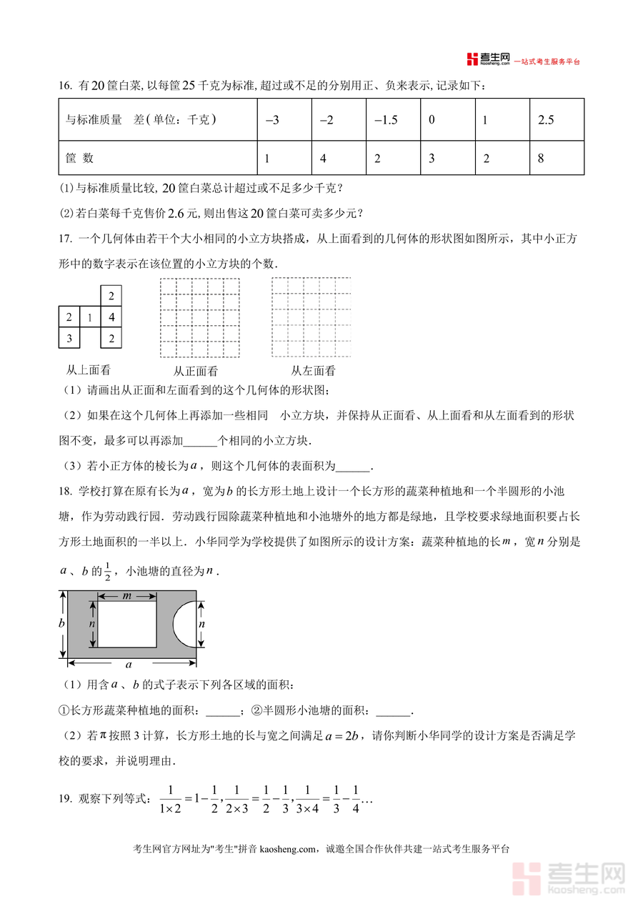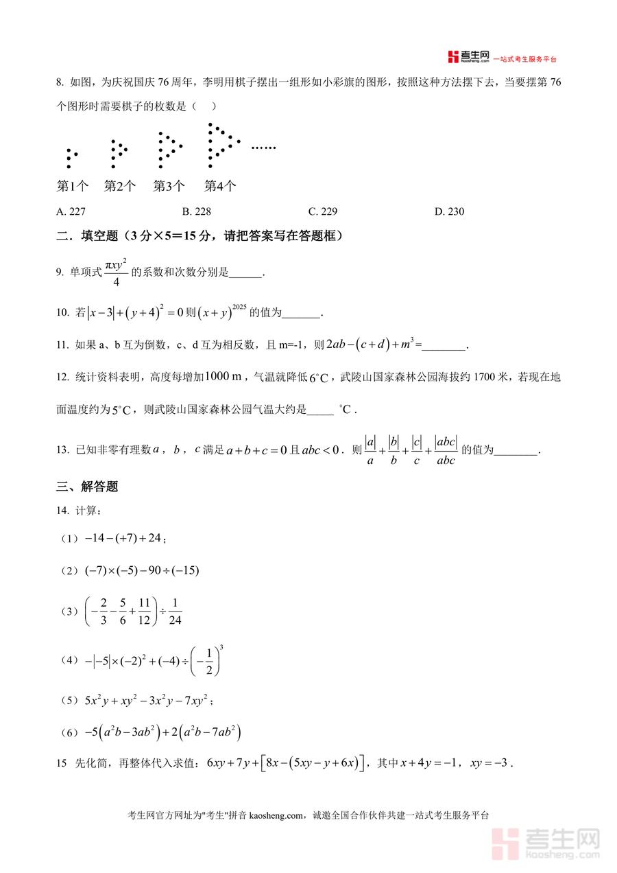 该资料核心用途为辅助学生进行阶段性知识巩固与自我检测,适用于课堂练习、课后作业及周末自主复习等场景;对学生而言,通过完成原卷训练可模拟真实周测环境,熟悉题型难度梯度,及时发现整式合并同类项、规律探究等薄弱环节,提升应试能力;对教师而言,可作为教学参考资料,了解学生知识掌握情况并调整教学策略;对家长而言,能帮助监督孩子学习进度,辅助孩子进行针对性查漏补缺。
