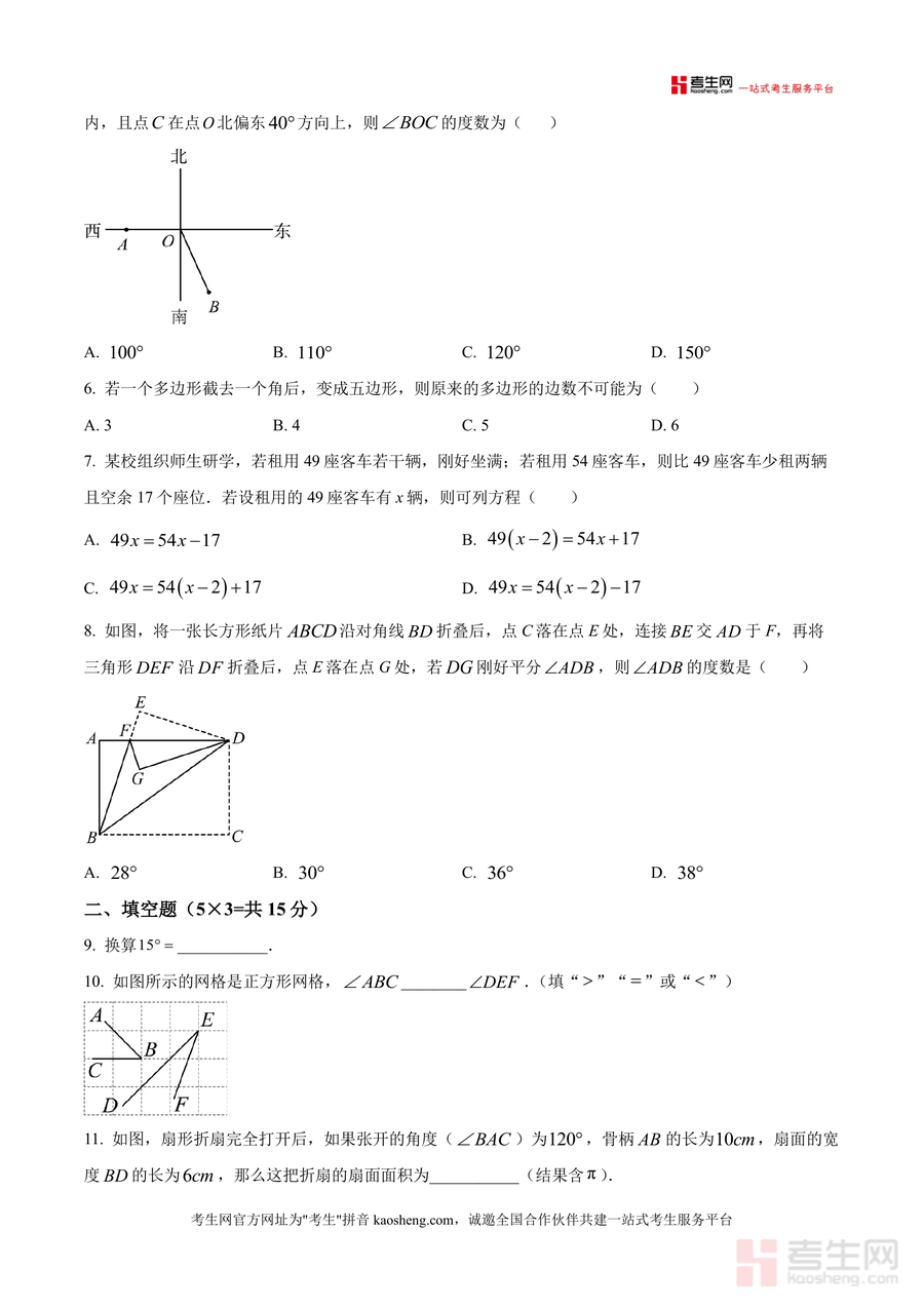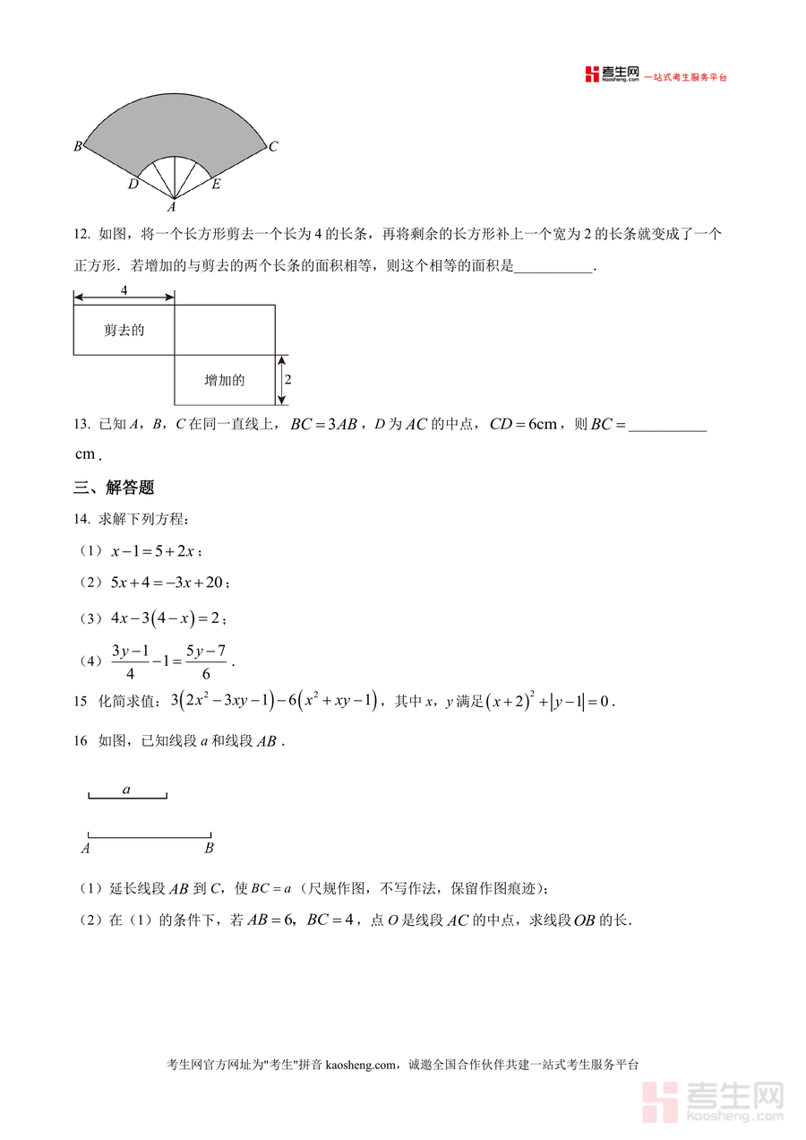 《精品解析:广东省深圳市宝安中学2025-2026学年七年级上学期15周周测数学试卷(原卷版).docx》是一份针对深圳宝安中学七年级上册数学阶段性学习成果检测设计的高质量原卷资料。该试卷覆盖七年级上学期核心知识模块:代数领域包含科学记数法表示大数、一元一次方程求解与等式变形、代数式化简求值;几何领域涉及直线射线线段作图规范、角度换算与计算、扇形面积应用;还包含新定义探究题(三分线/四分线)及实际应用题(商场盈利分析、行程问题)。其特色在于严格贴合深圳本地教学进度与考纲要求,题目设置梯度合理——基础题考查概念理解,中档题侧重知识应用,难题注重思维拓展,能全面反映学生阶段性学习状况。