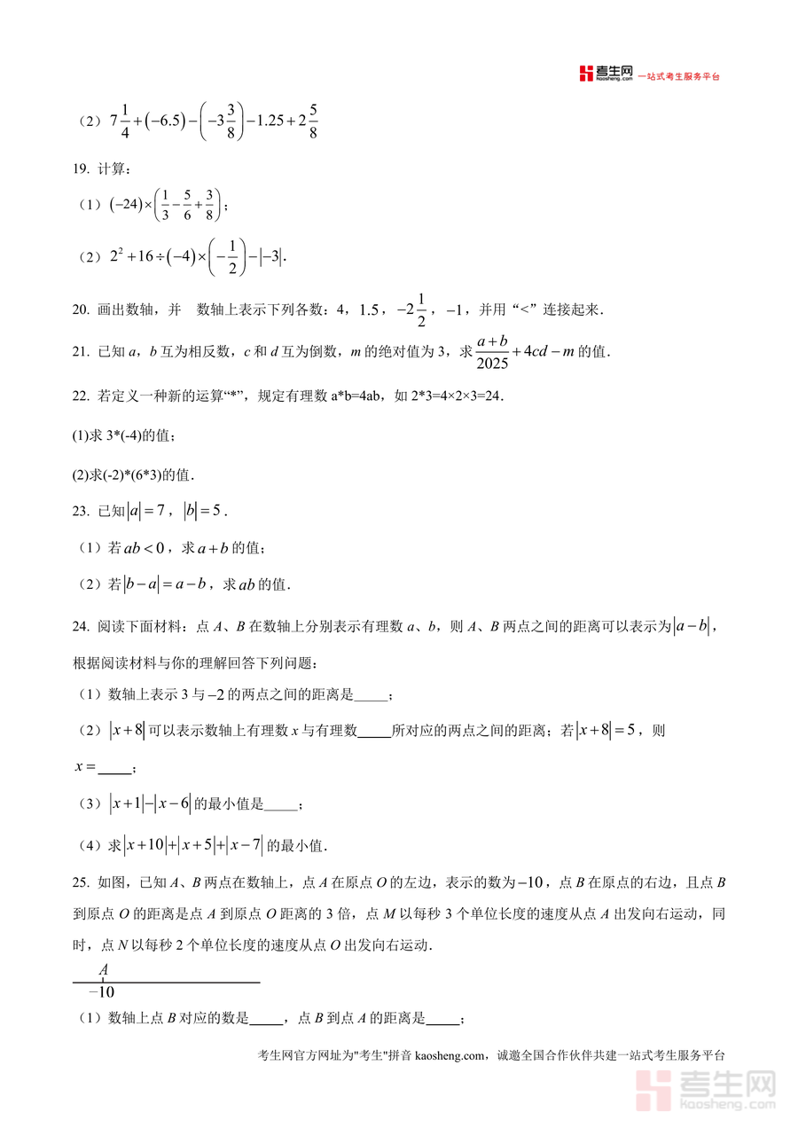 该原卷版的核心用途在于助力学生进行月考备考自测与知识漏洞排查,同时为教师提供教学参考依据。使用场景包括学生课后自主模拟训练以熟悉考试节奏与题型特点、教师用于课堂练习布置或试卷讲评素材准备、家教辅导者针对性设计复习方案。用户价值体现在通过真实真题训练,帮助学生精准把握该校月考命题方向与难度梯度;备考优势则在于其能有效提升学生应试能力——例如通过新定义运算题强化知识迁移能力、通过数轴综合题培养数形结合思维、通过规律探究题训练逻辑推理能力。