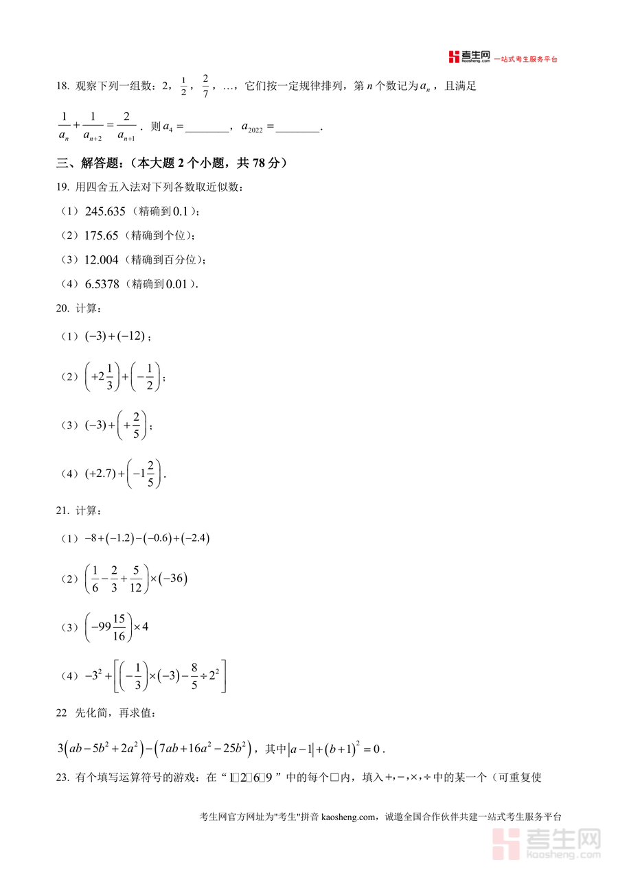 该资料核心用途在于助力七年级学生进行半期考前系统复习与知识点巩固,提升应试能力。使用场景包括学生自主刷题训练、教师课堂练习布置及家长辅助辅导等;用户价值体现在帮助学生熟悉考试题型结构与分值分布,精准定位知识薄弱环节;备考优势显著——通过真题训练可快速适应校际联考的命题风格,掌握解题技巧与思路拓展方法,进而提升解题速度与准确率,为半期考试取得优异成绩奠定基础,是高效备考不可或缺的工具。