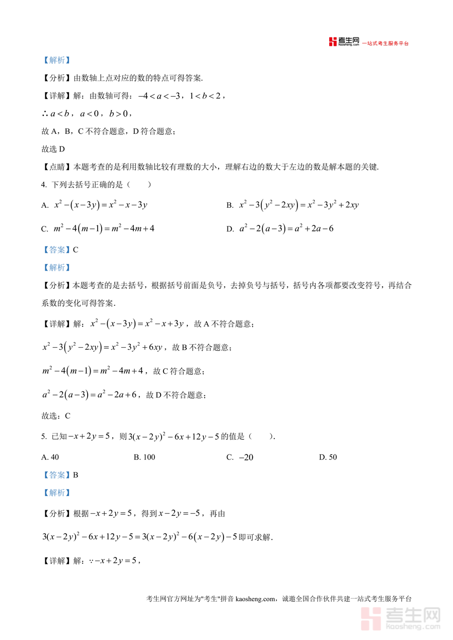 本资料适用于重庆市及周边地区七年级学生、初中数学教师及学生家长群体。作为名校集团半期检测精品解析,它不仅是应对当期考试必要工具,更具有不可替代性——真题权威性与解析深度结合,能帮助学生建立系统知识框架,培养科学解题思维,为后续数学学习奠定坚实基础,具有长期学习指导价值。