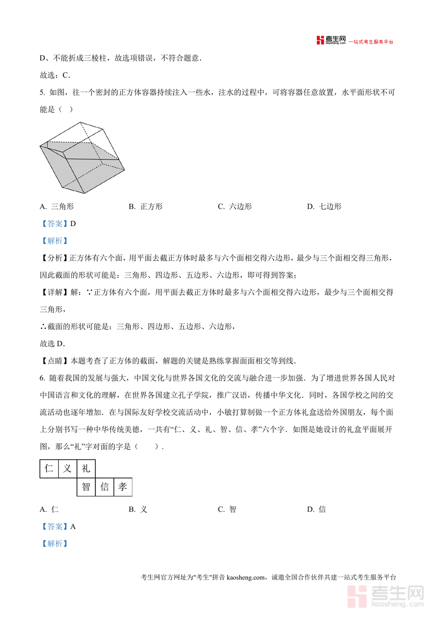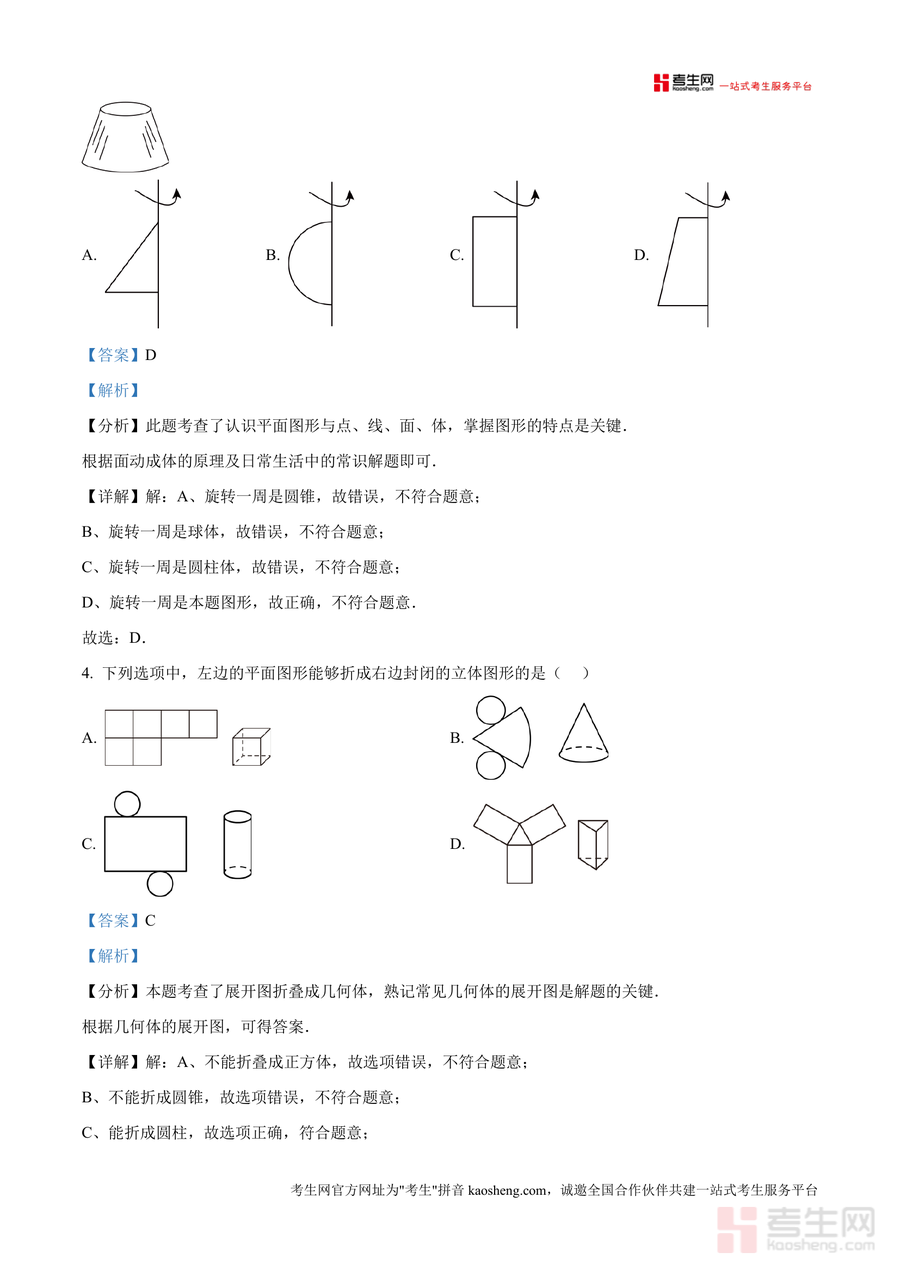 该资料核心用途在于帮助学生系统梳理第一章知识体系,强化立体图形相关考点理解与应用能力;使用场景涵盖课后针对性复习(通过解析巩固薄弱环节)、月考考前冲刺训练(借助真题模拟熟悉考试题型)、自主错题分析(明确错误原因),教师可将其用于课堂例题讲解或分层作业设计;用户价值体现为通过真题练习提升应试能力,掌握解题思路与方法,高效备战月考,同时加深对几何基础概念认知。